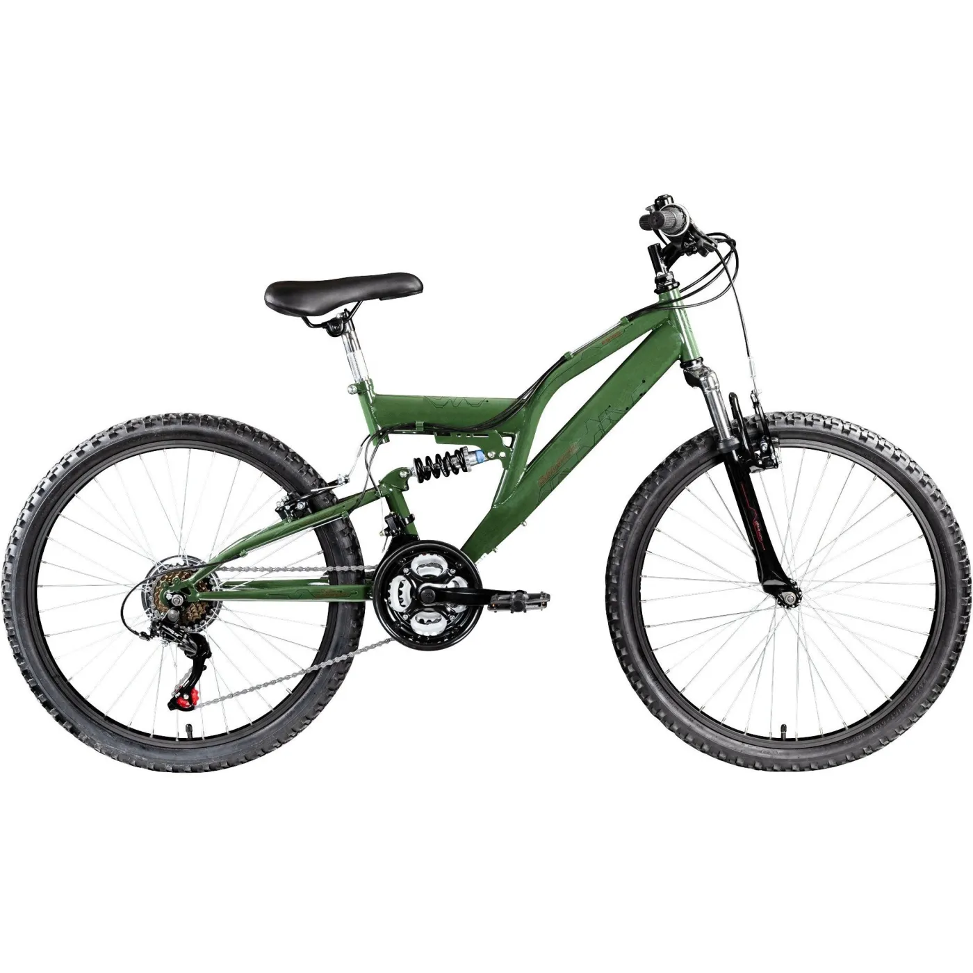 Dobrze wyważona stalowa rama posiada element sprężynowy, który wraz z amortyzowanym widelcem zapewnia wygładzenie wszelkich nierówności podłoża! W napędzie znajduje się trzyczęściowa korba, która jest połączona z 6-biegową kasetą. Młody rowerzysta ma do dyspozycji 18 biegów i może naprawdę nabrać prędkości! Zmiana biegów odbywa się za pomocą obrotowej manetki. Jeśli chcesz zwolnić, hamulce typu V na przednich i tylnych kołach trzymają i mocno hamują rower w każdej sytuacji.