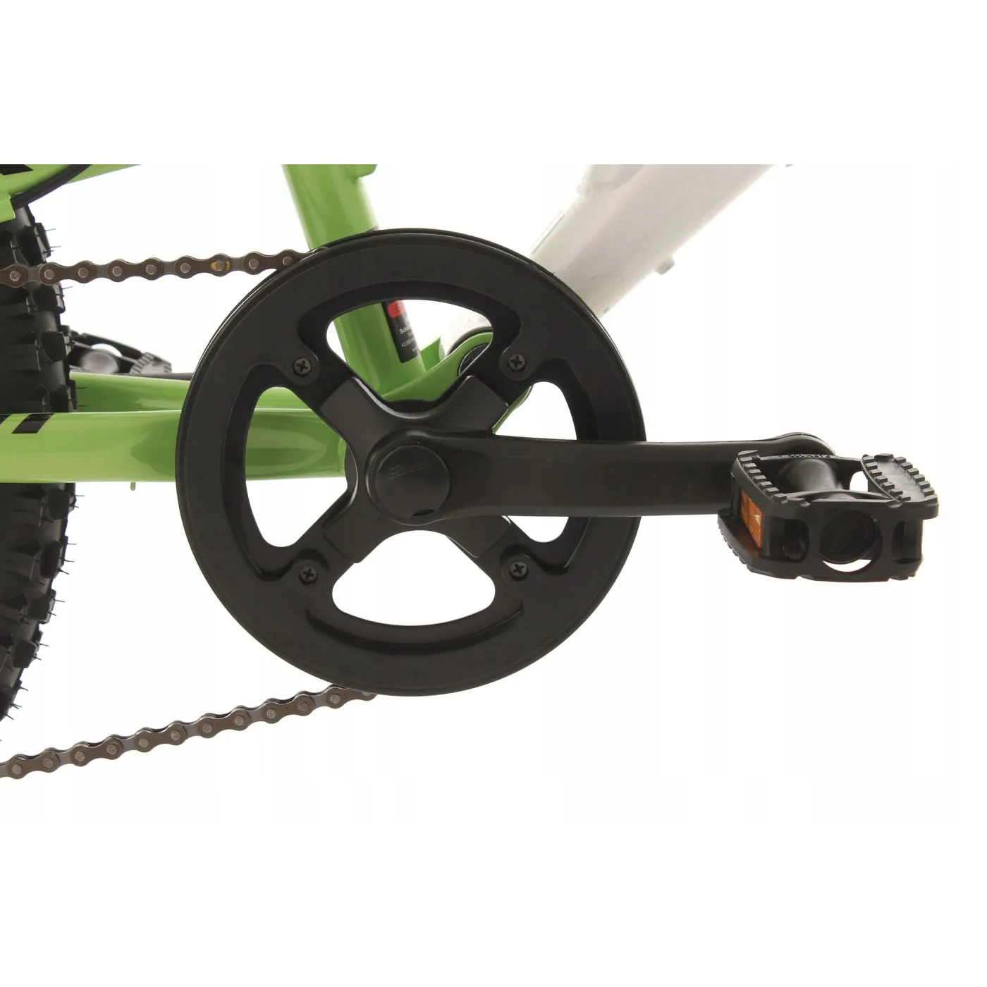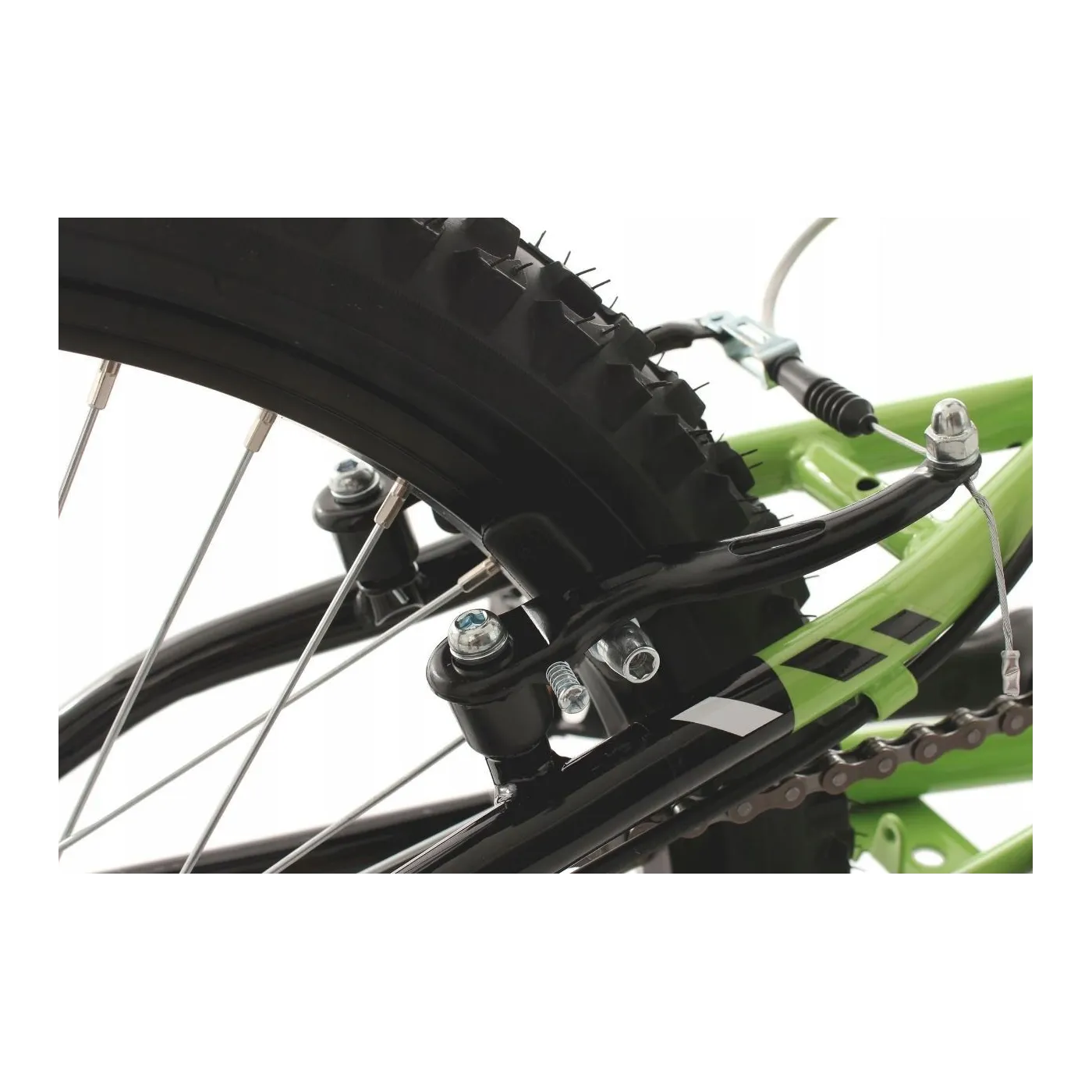 Solidny, w pełni górski sprzęt dla najmłodszych, który w zupełności odwzorowuje wygląd większych rowerów górskich dla dorosłych.