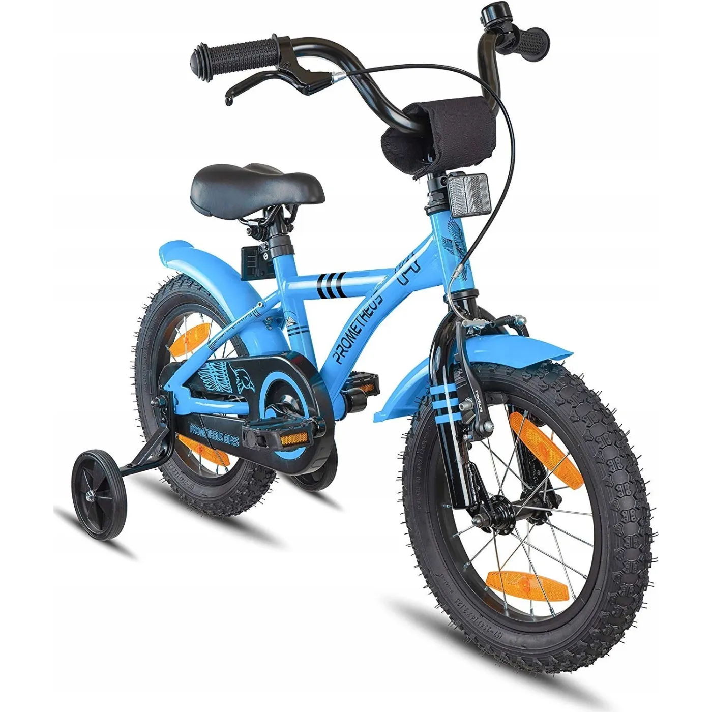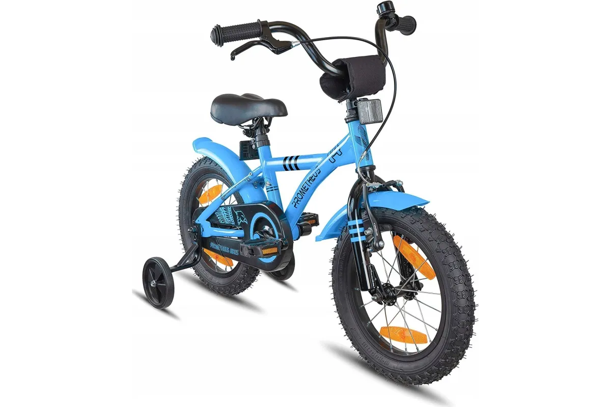 OpisPrometheus - klasyczny rower w kolorze niebieskim zapewni radość i bezpieczeństwo podczas nauki jazdy, dzięki dodatkowym kółkom po bokach. Dodatkowo widoczność najmłodszych rowerzystów zapewniają odblaski z przodu, z tyłu oraz na kołach.