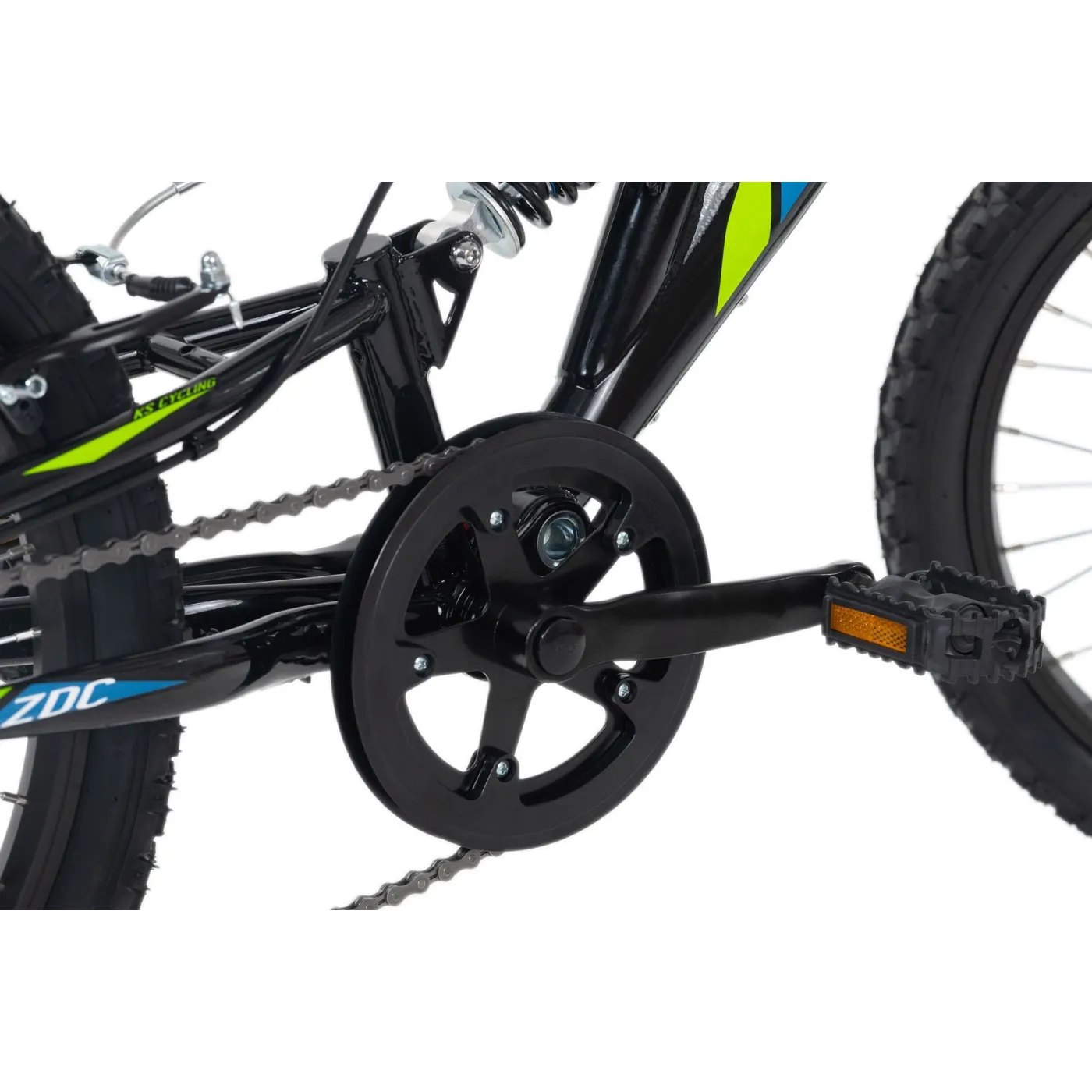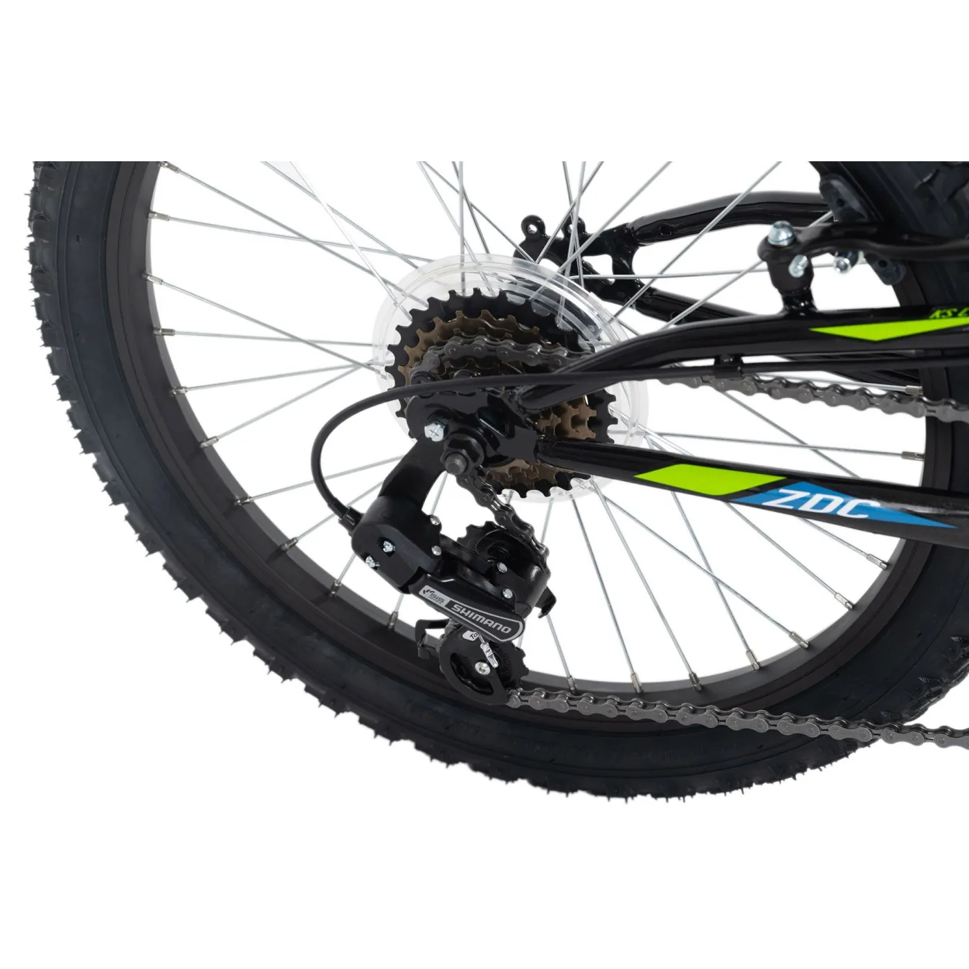 Podstawę stanowią amortyzowane rama i widelec. Masywne opony i design sprawiają, że rower dziecięcy przyciąga wzrok. Hamulce typu V z przodu i z tyłu zapewniają bezpieczeństwo. Rower jest również wyposażony w 6-biegową przerzutkę SHIMANO.