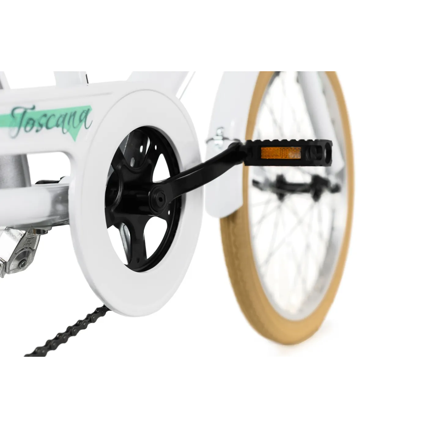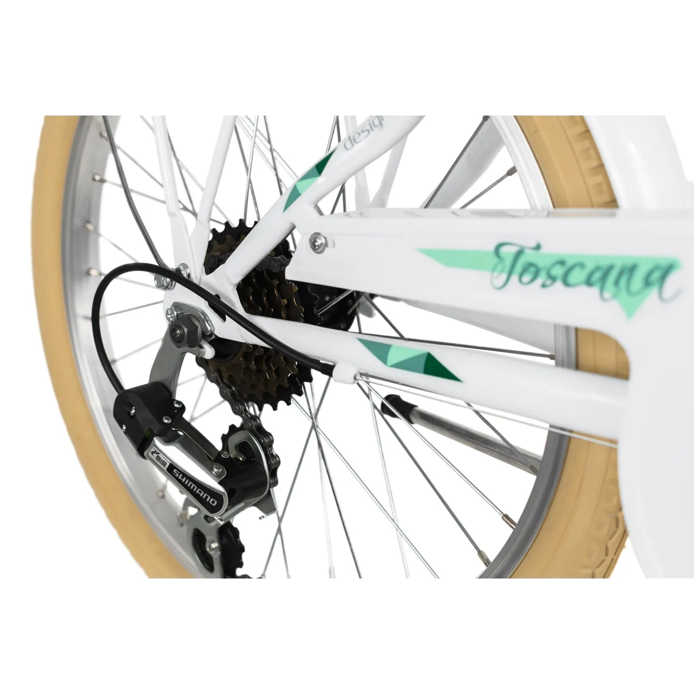 Nie musisz bać się o bezpieczeństwo Twojego dziecka. Ta śliczna dziewczęca damka, posiada 20-calowe koła, 6 biegów, przyjazne dla dzieci hamulce V-Brake, a do tego bagażnik oraz osłonę na łańcuch. Rower idealnie sprawdzi się podczas rodzinnych wycieczek lub do codziennej zabawy obok domu.