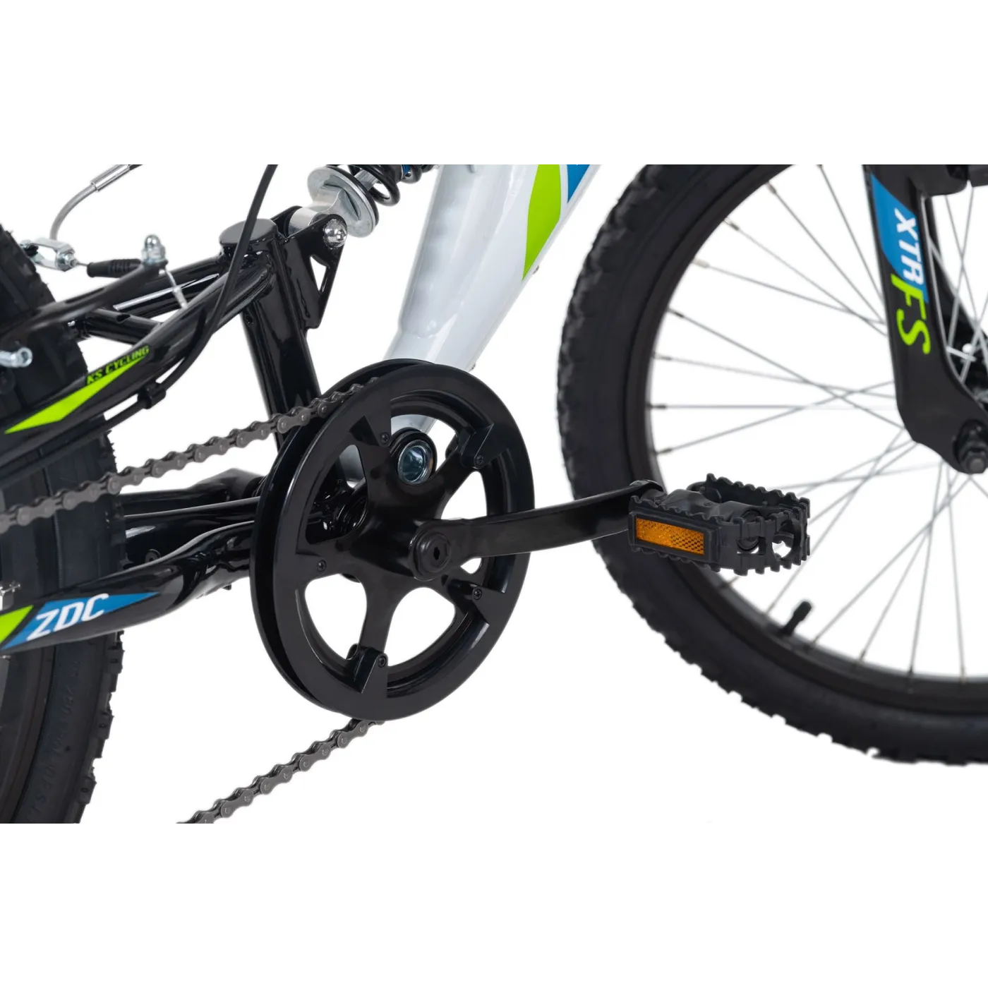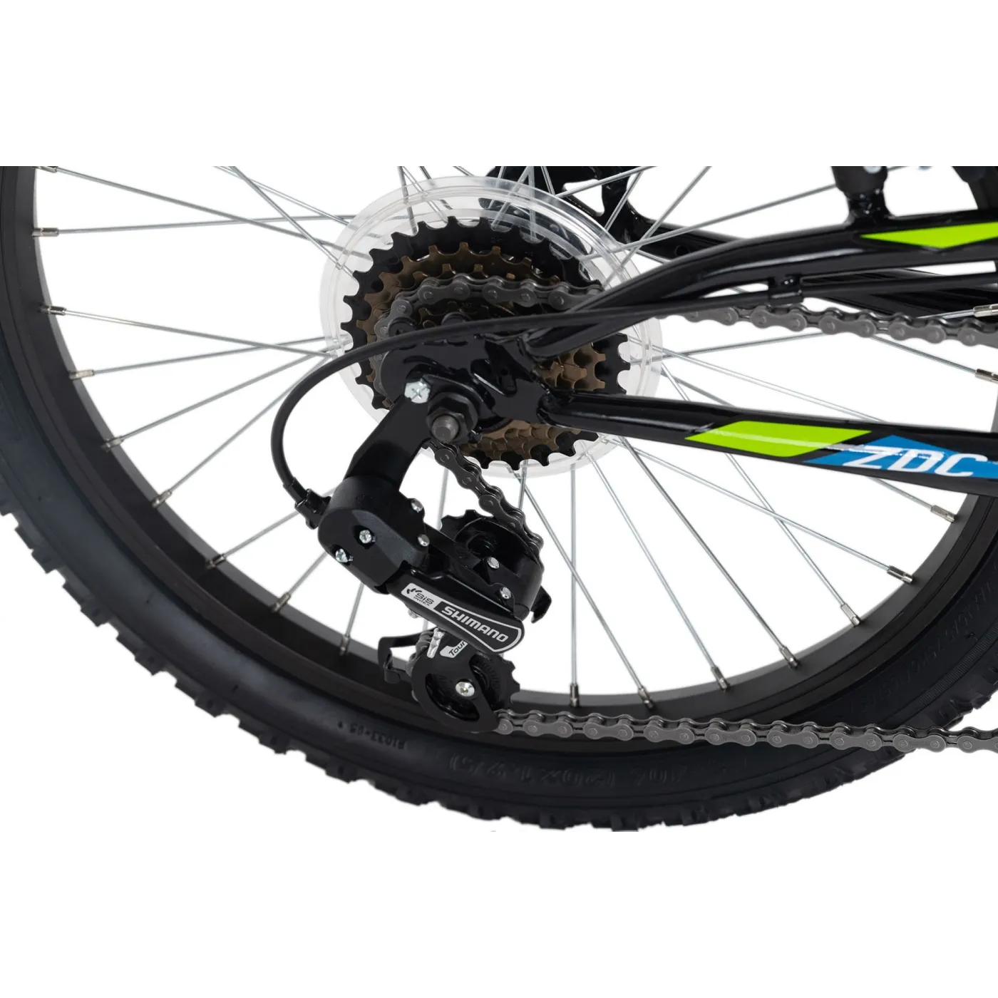 Podstawę stanowią amortyzowane rama i widelec. Masywne opony i design sprawiają, że rower dziecięcy przyciąga wzrok. Hamulce typu V z przodu i z tyłu zapewniają bezpieczeństwo. Rower jest również wyposażony w 6-biegową przerzutkę SHIMANO.