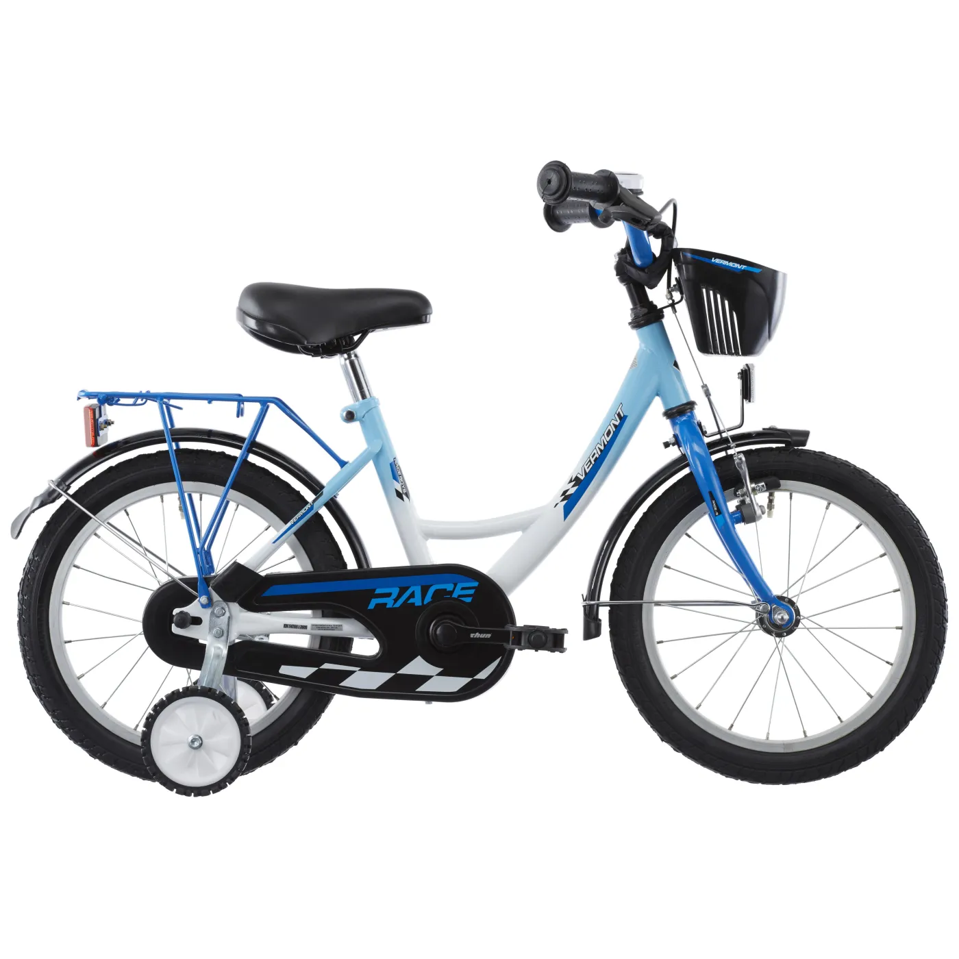 Vermont Race posiada stabilne koła, hamulec przedni oraz nożny, a do tego bagażnik i przedni koszyk na drobiazgi - to wyposażenie czyni go niezawodnym towarzyszem dla najmłodszych.