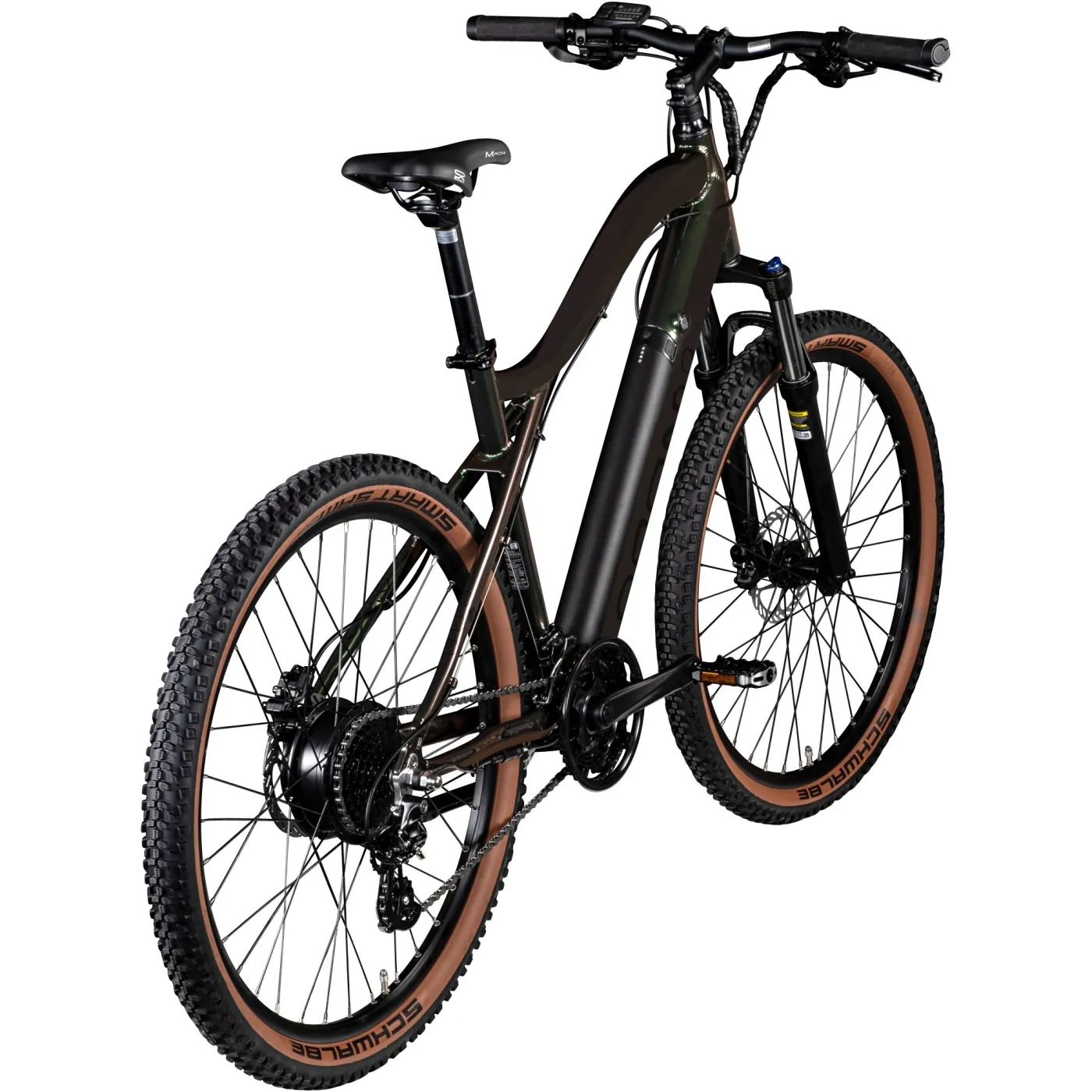⚡ W sercu tego roweru drzemie mocny silnik piasty tylnej Ananda M145, oferujący 250 W mocy i 40 Nm momentu obrotowego. Takie parametry zapewniają naturalne odczucia podczas pedałowania, nie odbierając wrażeń typowych dla klasycznego roweru górskiego. Zasilanie zapewnia akumulator Greenway o pojemności 14 Ah (504 Wh), wbudowany elegancko w ramę. Zakres zasięgu to od 35 do nawet 150 km w zależności od stylu jazdy, ukształtowania terenu i poziomu wspomagania.