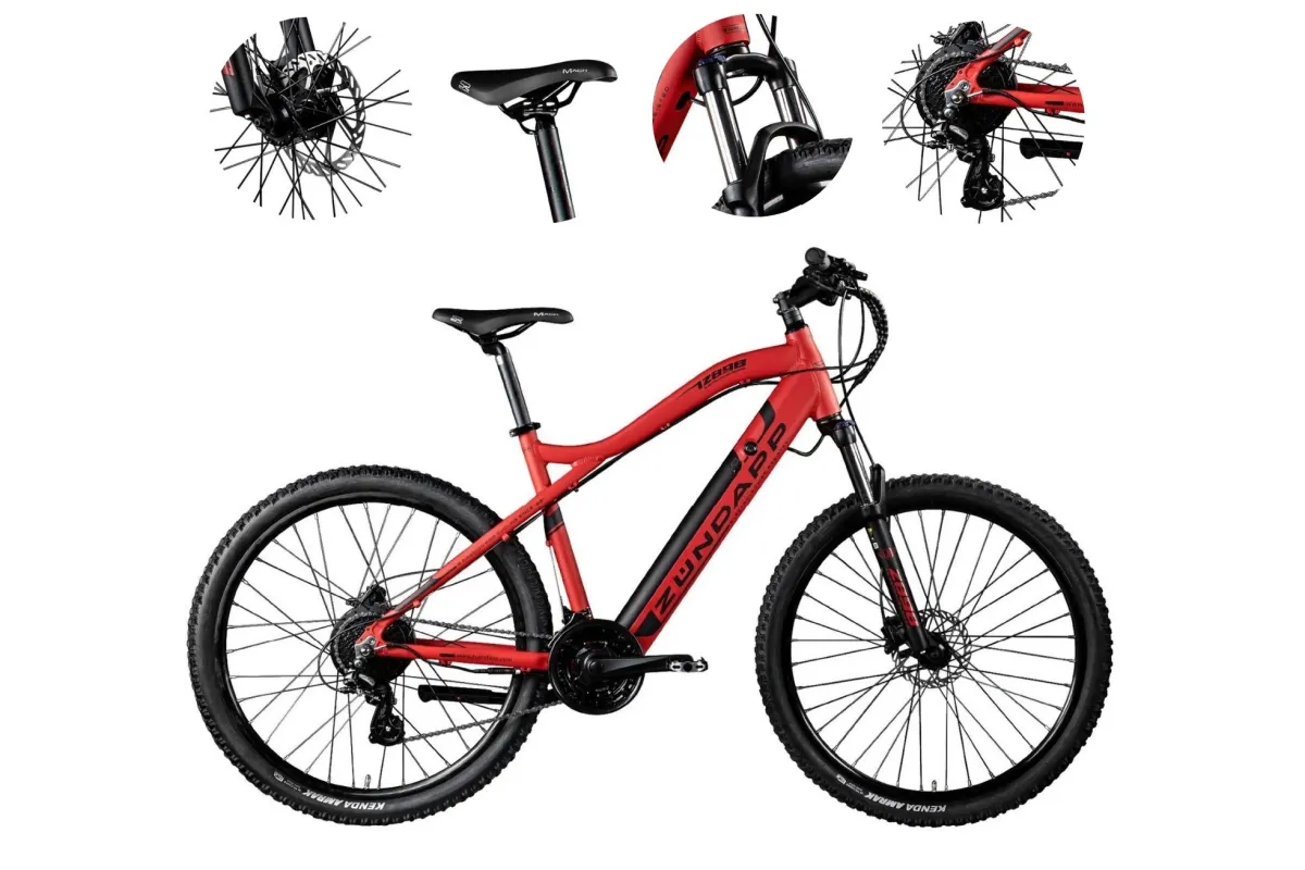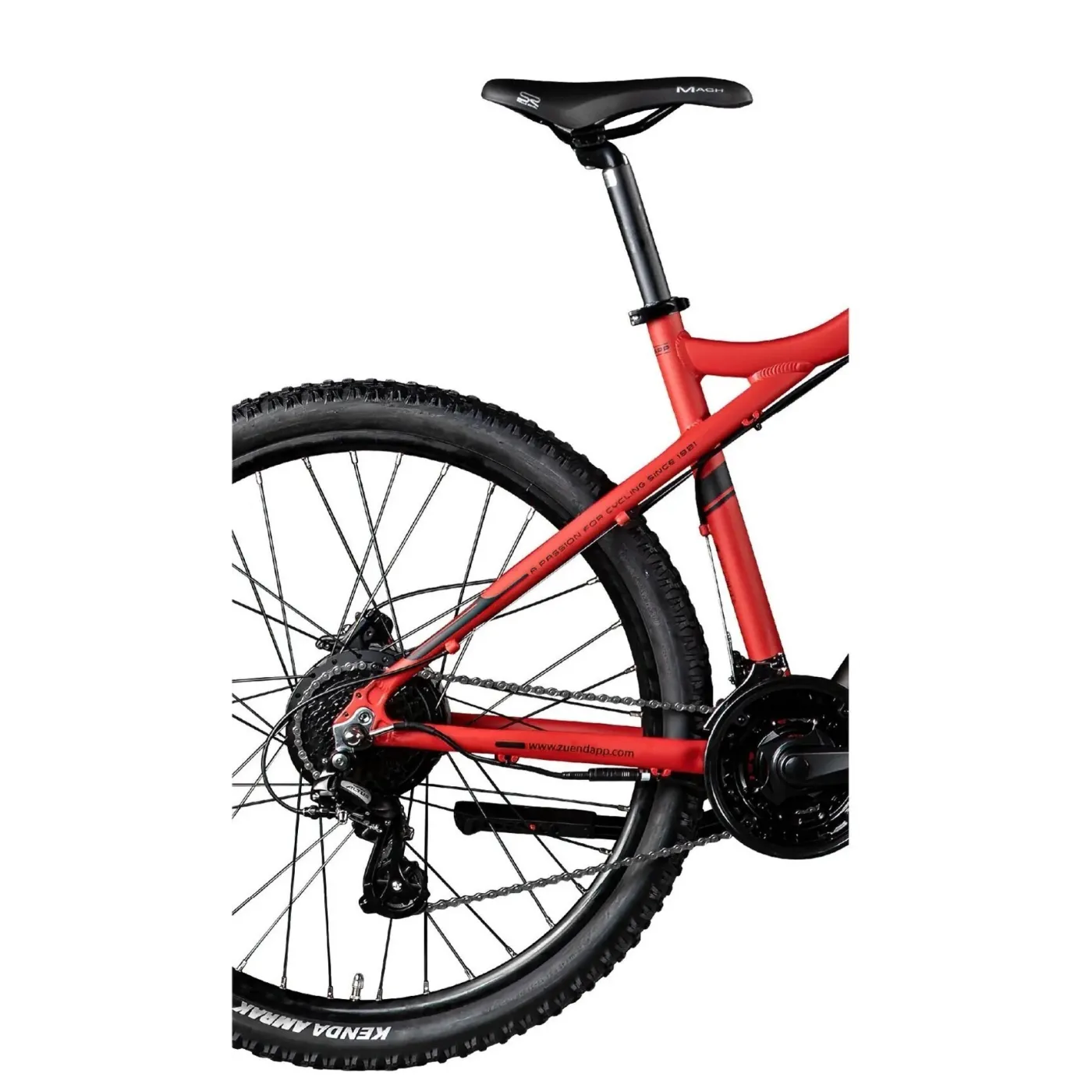🚵♀️ Na uwagę zasługuje także osprzęt. 24 przełożenia dostępne dzięki zestawowi przerzutek Shimano 3x8 dają pełną kontrolę nad dynamiką jazdy, niezależnie od nachylenia terenu. Rower został wyposażony w korby Zündapp (42-34-24 zęby), solidny suport i kasetę 8-rzędową 12-32T. To połączenie zapewnia płynność i precyzję przełożeń zarówno na stromych podjazdach, jak i szybkich zjazdach.