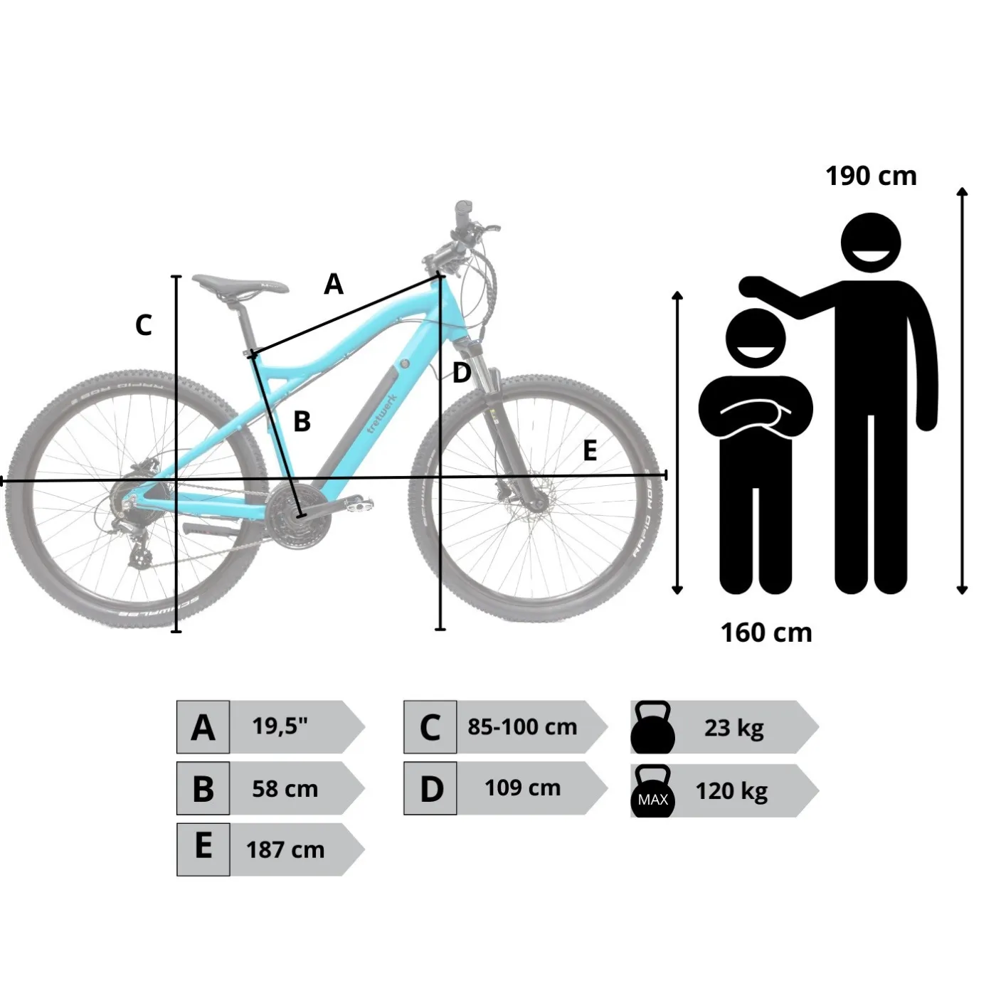 - Rama: 19,5" (49 cm), wysokiej jakości aluminium - lekka, wytrzymała, odporna na korozję