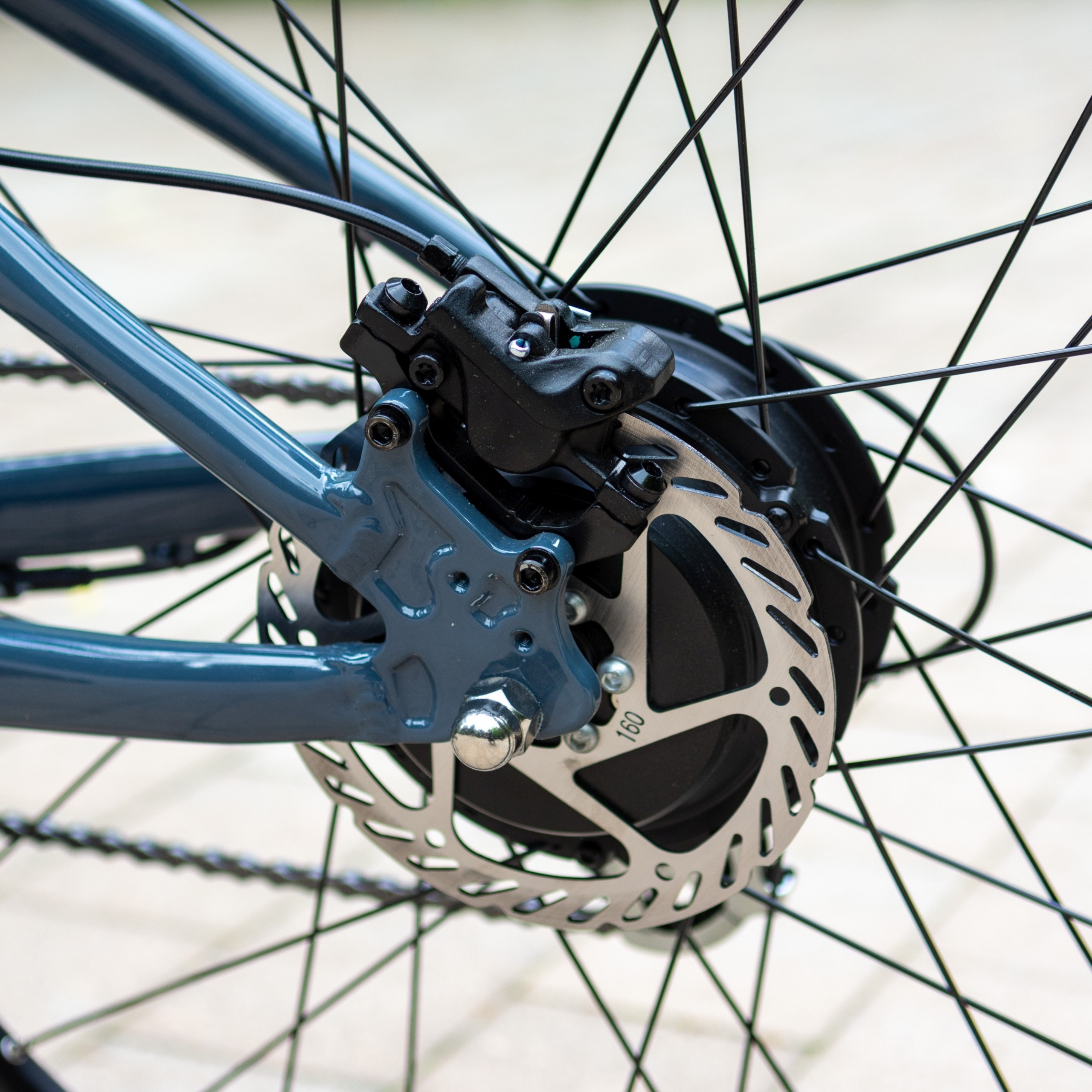 4️⃣ Hydrauliczne hamulce tarczowe – tarcze 160 mm gwarantują skuteczne i pewne hamowanie w każdych warunkach.