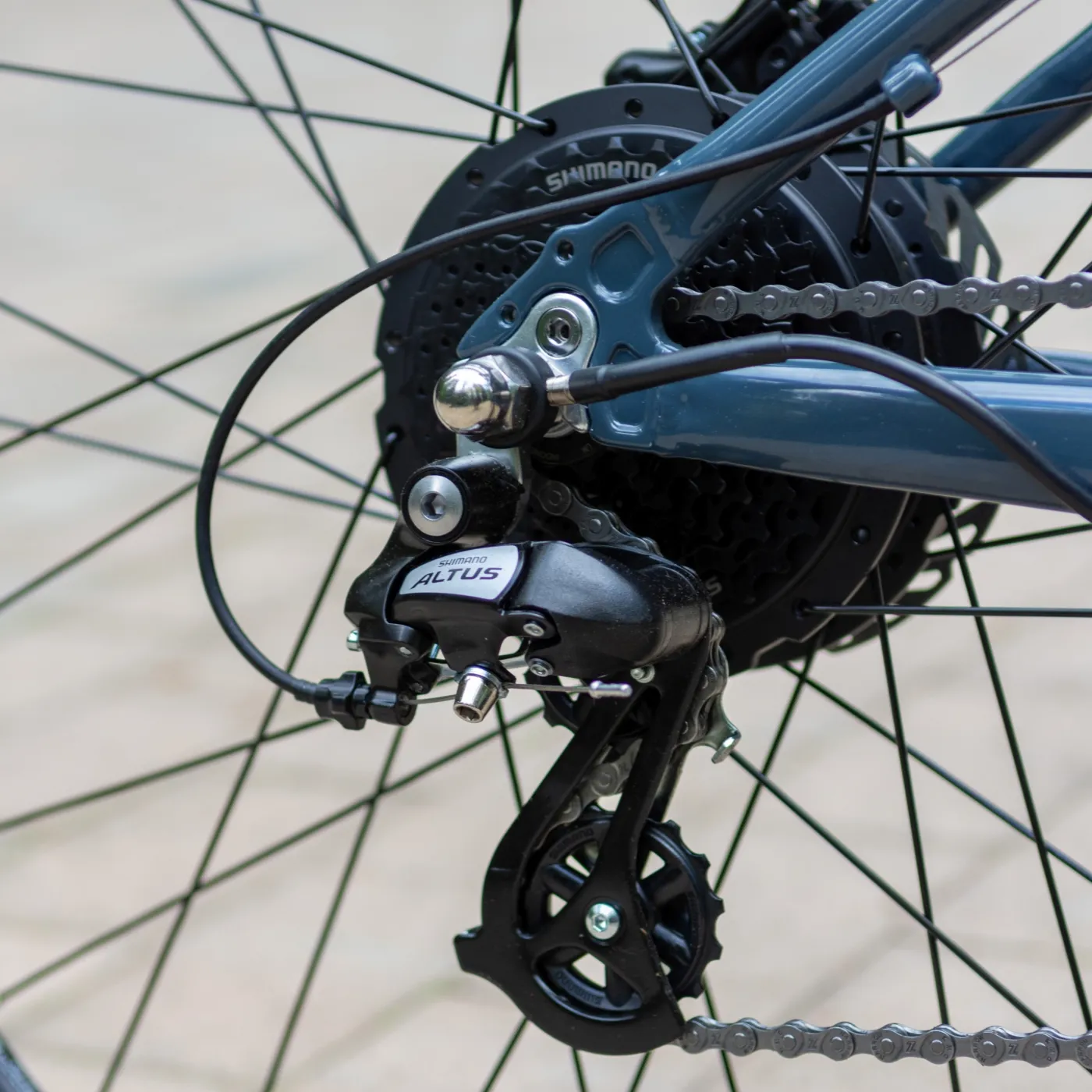 Przerzutka przednia SHIMANO Tourney oraz tylna SHIMANO Altus współpracują z manetką Altus SL-M315 RapidFire, zapewniając płynną i szybką zmianę przełożeń.