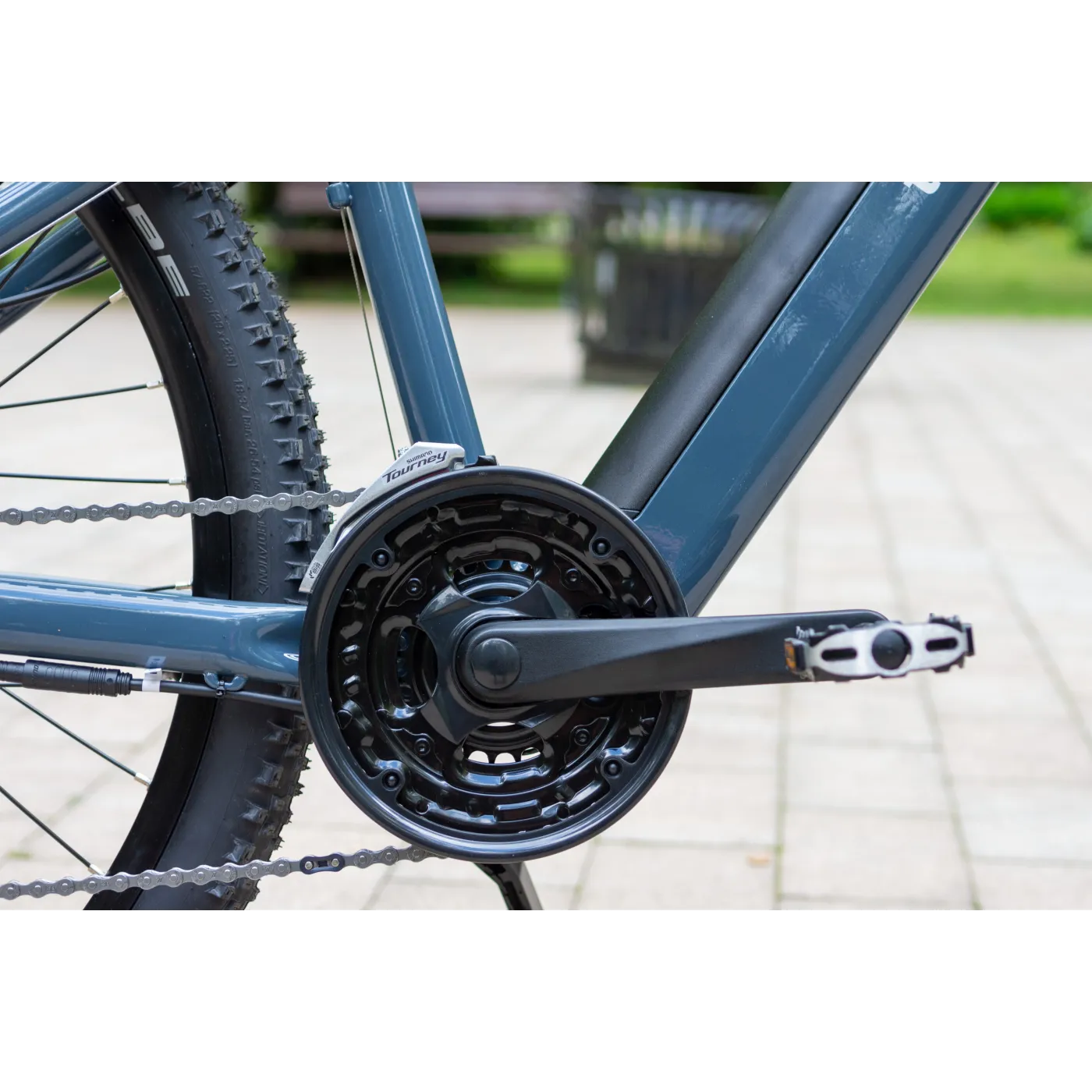 3️⃣ Przerzutki SHIMANO 3x8 – zestaw przedniej przerzutki Tourney oraz tylnej Altus (24 biegi) z kasetą 12-32 zapewnia szeroki zakres przełożeń.