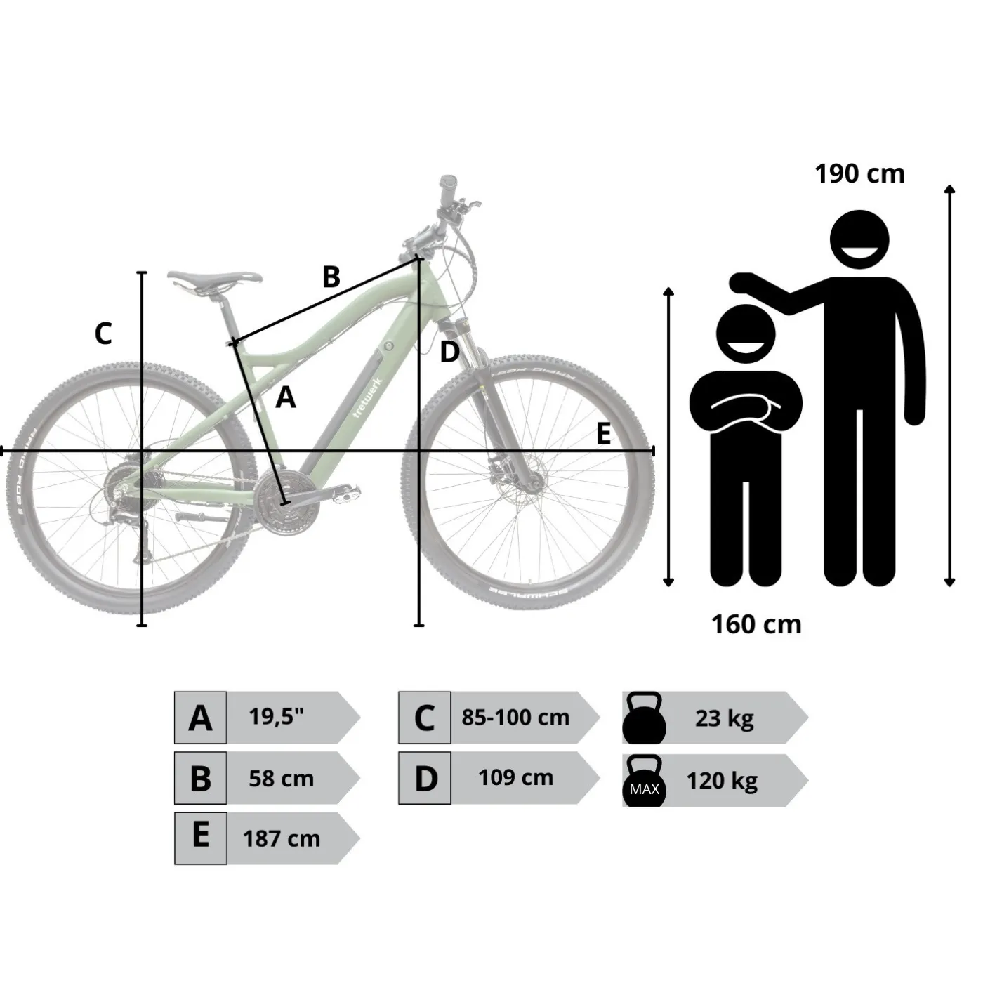 - Rama: 19,5" (49 cm), wysokiej jakości aluminium - lekka, wytrzymała, odporna na korozję
