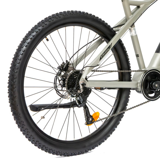 Rower wyposażono w koła 27,5" z terenowym bieżnikiem, które zapewniają bardzo dobrą przyczepność oraz stabilność podczas jazdy po nierównych nawierzchniach.
