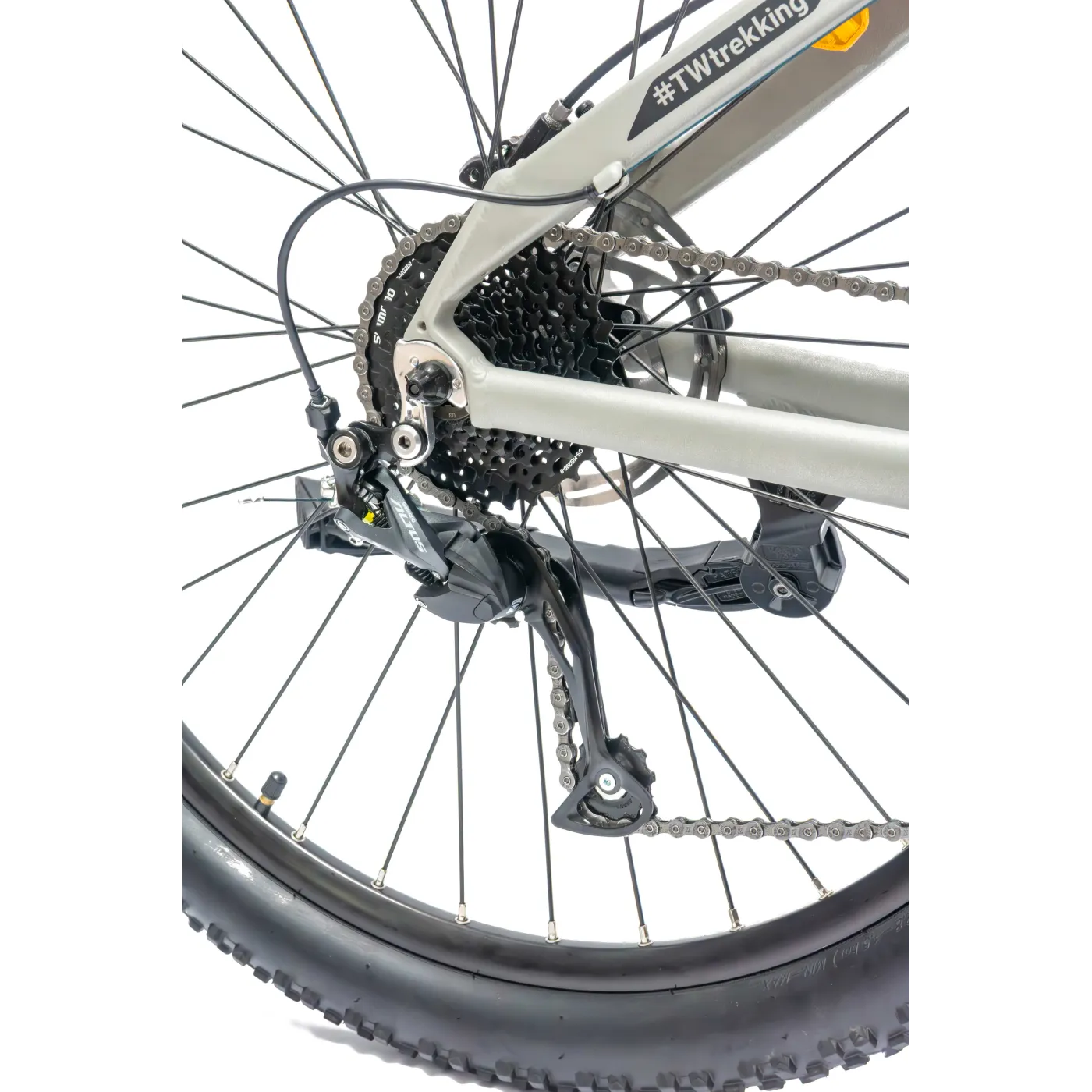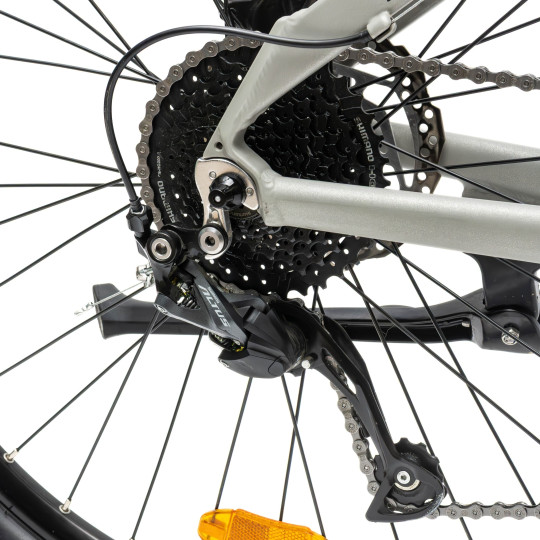 3️⃣ Przerzutka SHIMANO Altus 9-biegowa – w połączeniu z kasetą 11-32 zapewnia płynną zmianę przełożeń i dopasowanie jazdy do różnych warunków.