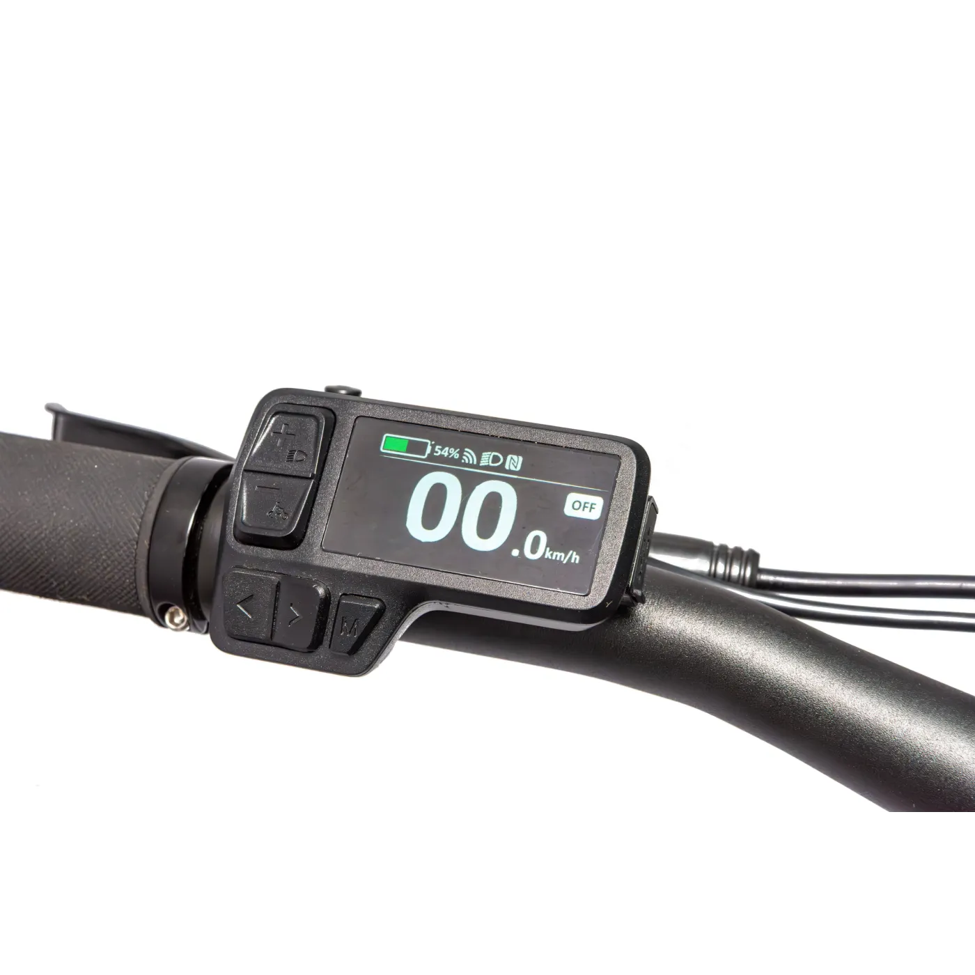 - Jednostka sterująca: LCD Ananda DF130 + aplikacja na Smartphone + NFC - umożliwia bieżący odczyt najważniejszych parametrów jazdy (prędkość, poziom naładowania baterii, pokonany dystans, wybrany tryb wspomagania)