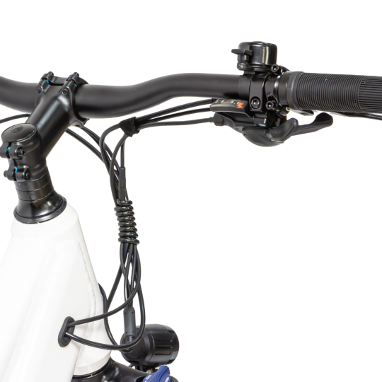 Elektryczny rower górski Olpran Pluma został wyposażony w sprawdzoną manetkę SHIMANO Rapidfire, która umożliwia szybką i dokładną zmianę biegów bez konieczności odrywania dłoni od kierownicy.