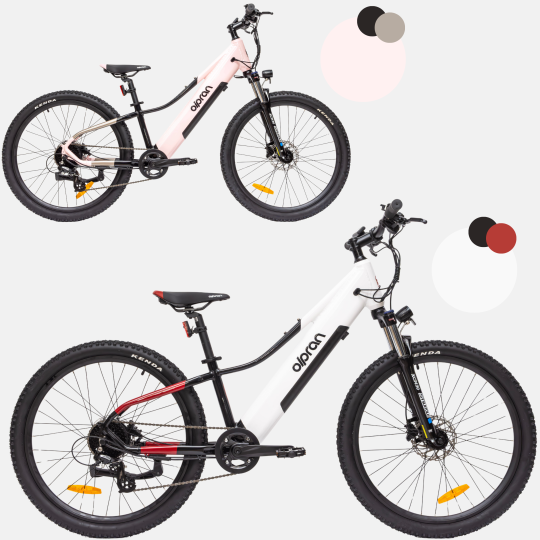 Elektryczny rower górski Olpran Pluma dostępny jest w dwóch stylowych wariantach kolorystycznych, dzięki czemu możesz dopasować go do swojego gustu i stylu jazdy.