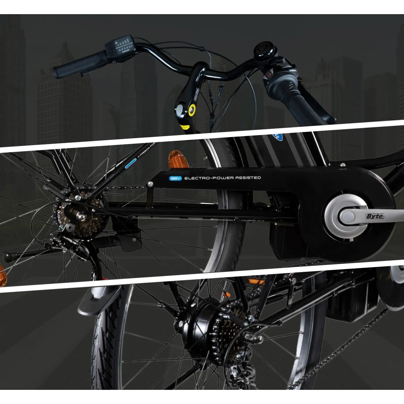 ⚡ Na tylnym kole znajduje się silnik piasty o mocy 250 W z momentem obrotowym do 40 Nm z możliwością maksymalnej prędkości do 25 km/h. Rower jest obsługiwany za pomocą prostego sterownika, który jest przymocowany obok lewej rączki i można go obsługiwać bez konieczności zdejmowania ręki z kierownicy. Możesz wybrać jeden z trzech poziomów wsparcia, a także zobaczysz stan naładowania baterii. Dodatkowo, bateria o mocy 360 Wh pozwoli Ci pokonać nawet do 115 km!