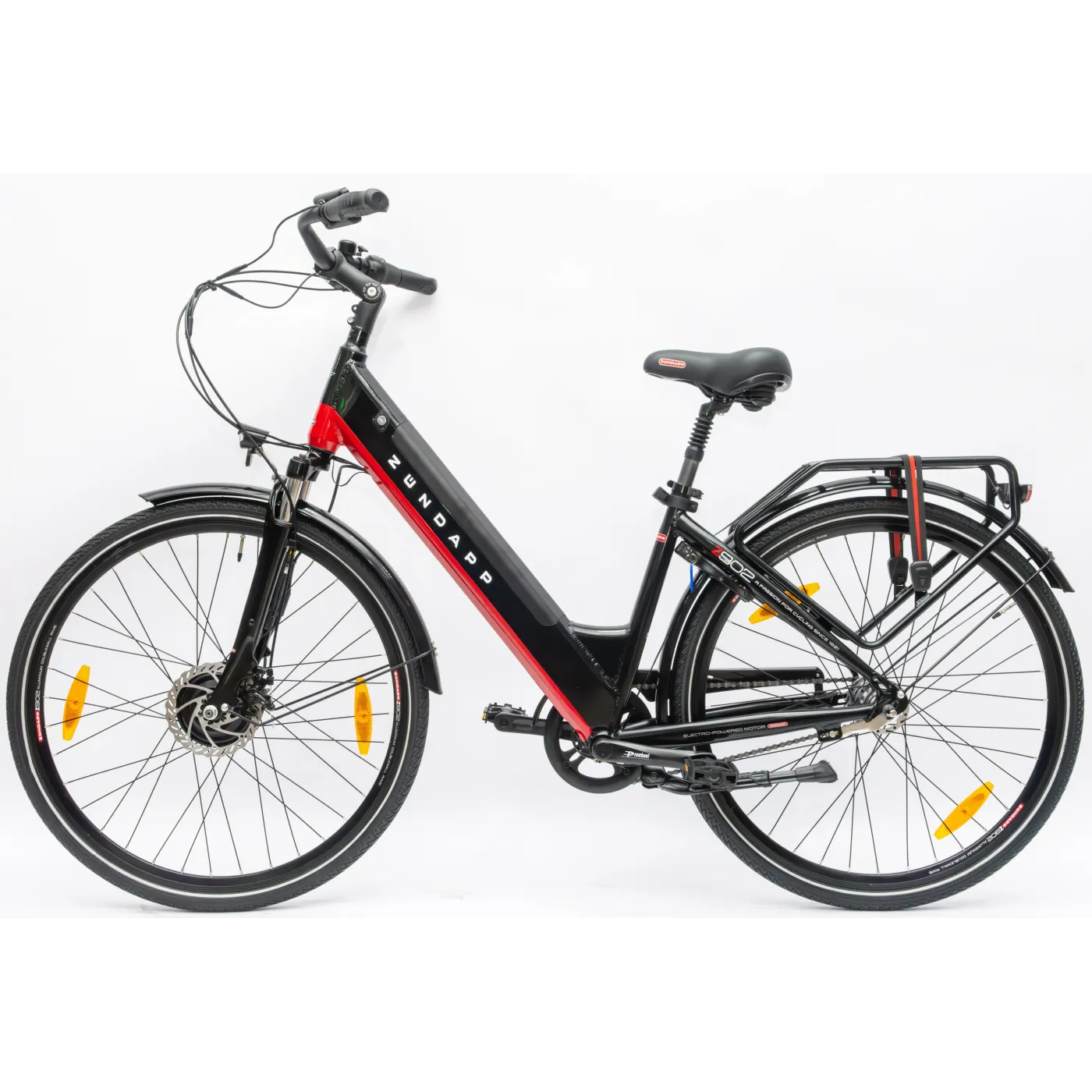 ⚖️Podstawową konstrukcją tego roweru jest lekka aluminiowa rama low-entry. Niski przekrok ułatwia wyważenie roweru oraz bezproblemowe wsiadanie i zsiadanie z roweru. Nawet osoby o ograniczonej sprawności ruchowej mogą wygodnie korzystać z tego e-roweru. Pionowa pozycja siedząca, wspierana przez obróconą do tyłu kierownicę miejską, zapewnia dobrą widoczność na drodze i prawie Cię nie męczy. Szerokie, komfortowe siodełko pozwala wygodnie siedzieć, a także jest przymocowane do sprężynowej sztycy, która pochłania nierówności podłoża. W tym samym celu zainstalowano amortyzowany widelec, aby chronić górną część ciała.