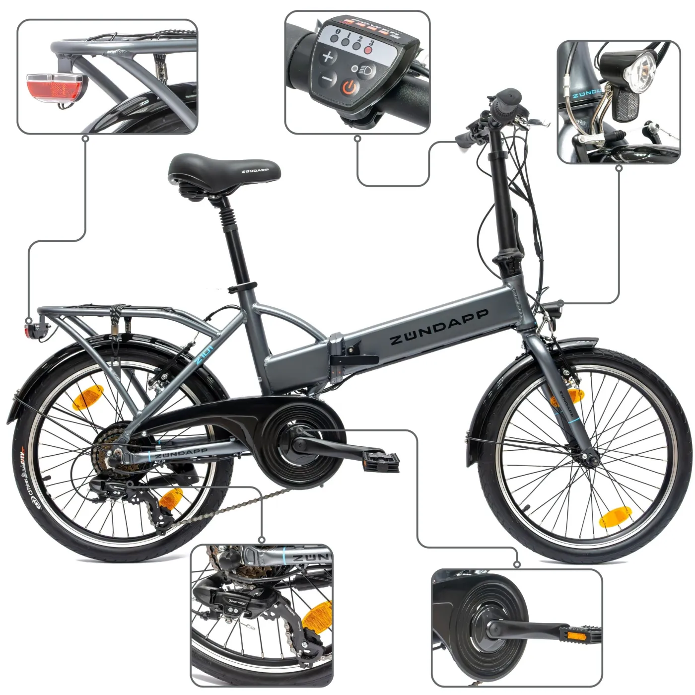 Składany rower elektryczny Zündapp Z101 łączy zalety tradycyjnego składanego roweru z napędem elektrycznym, dzięki czemu jest elastycznym, przyjaznym dla środowiska środkiem transportu w miastach. Nadaje się zarówno do dojazdów do pracy, jak i na zakupy, łączy sportowy charakter z praktycznością w codziennym użytkowaniu. Nawet na wakacjach Z101 jest niezawodnym towarzyszem, którego można zabrać wszędzie, aby zaoszczędzić miejsce. Dzięki mechanizmom składania w ramie, pedałach i mostku rower można szybko złożyć i zabrać do samochodu lub komunikacją miejską.