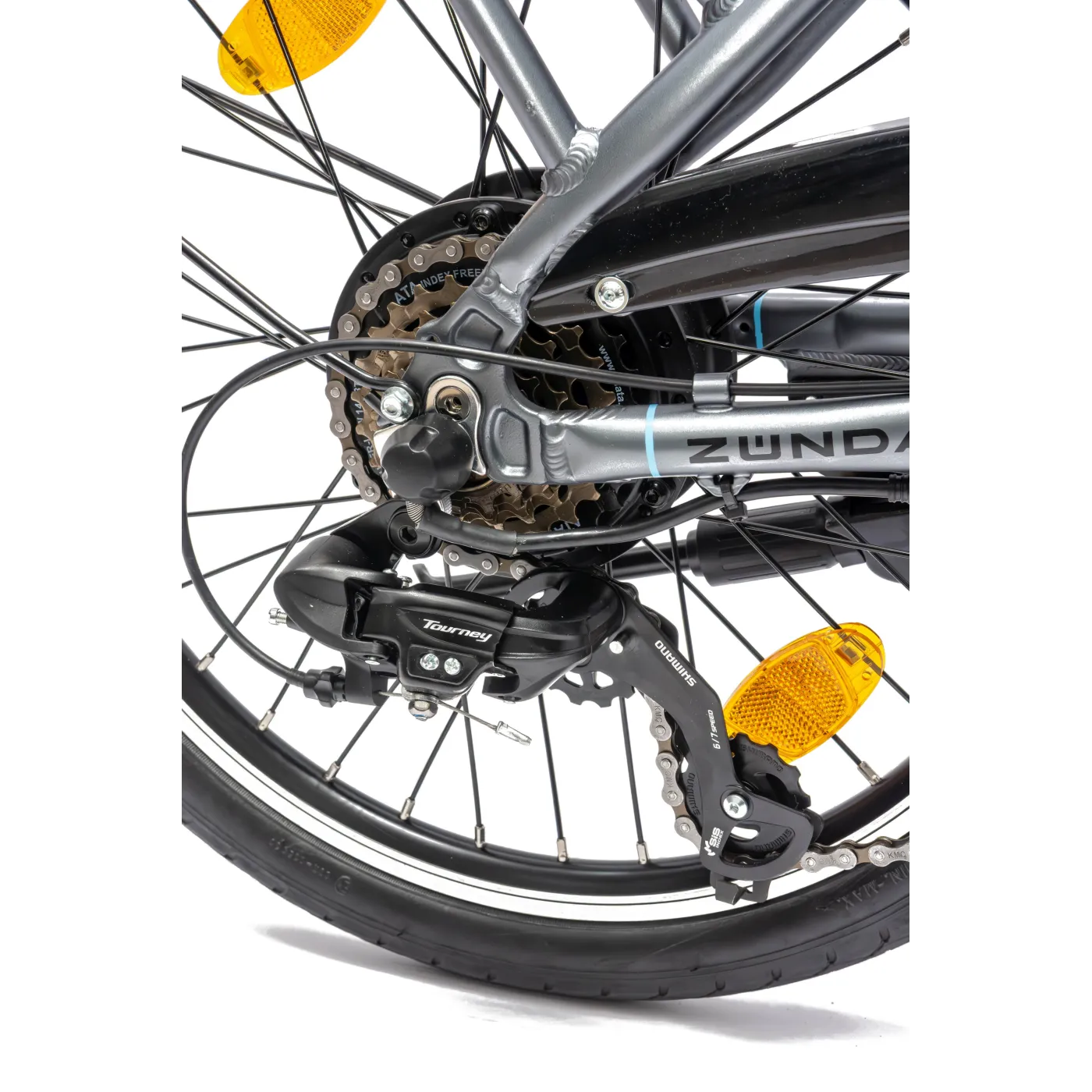 💎 Rama wykonana jest z wyjątkowo lekkiego aluminium, aby zmniejszyć wagę. Pomimo napędu elektrycznego rower wraz z akumulatorem waży tylko 21,1 kg, więc można go wnieść do pociągu lub samochodu. Niemniej jednak Zündapp Z101 jest tak samo wytrzymały i odporny jak tradycyjny rower.