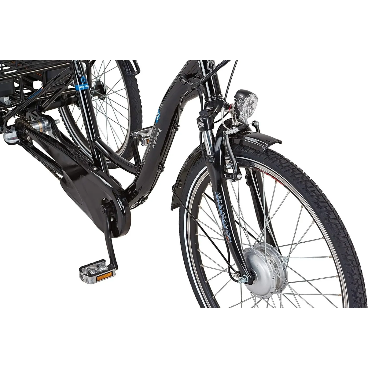✨ Wyróżniając się klasycznym, a zarazem nowoczesnym designem w czarnym kolorze, ten rower elektryczny jest nie tylko praktyczny, ale także stylowy. Wyposażony w błotniki, osłonę łańcucha oraz oświetlenie LED z funkcją świateł postojowych, zapewnia komfortową i bezpieczną jazdę o każdej porze dnia i nocy. Bagażnik oraz koszyk ułatwiają transport zakupów czy plecaka, co czyni ten model idealnym wyborem na codzienne dojazdy.
