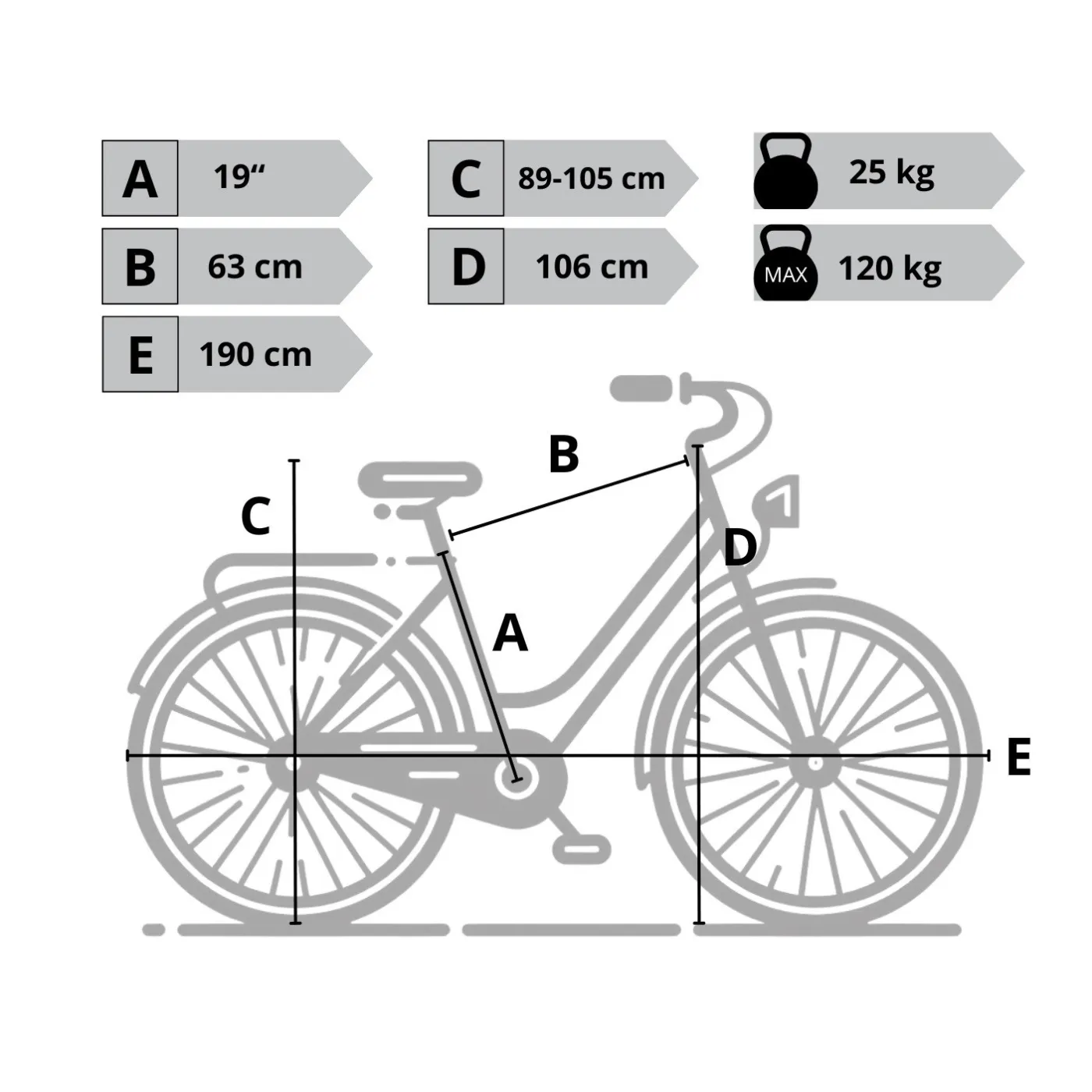 😎Aluminiowa rama ma kształt fali z głębokim wejściem. Taka geometria nie tylko zapewnia dobrą równowagę, ale także umożliwia wygodne wsiadanie i wysiadanie osobom o mniejszej mobilności. W połączeniu z kierownicą miejską wygiętą daleko do tyłu z mostkiem z regulacją kąta, rower zapewnia wyprostowaną, łagodną pozycję siedzącą, w której możesz jeździć przez długi czas bez oznak zmęczenia. Siedzisz na wygodnie wyściełanym wygodnym siodełku. Ponadto widelec amortyzowany zapewnia dodatkowy komfort jazdy, amortyzując nierówności podłoża. Ergonomicznie ukształtowane uchwyty zapewniają dużą powierzchnię styku, co skutkuje komfortem i bezpieczeństwem.