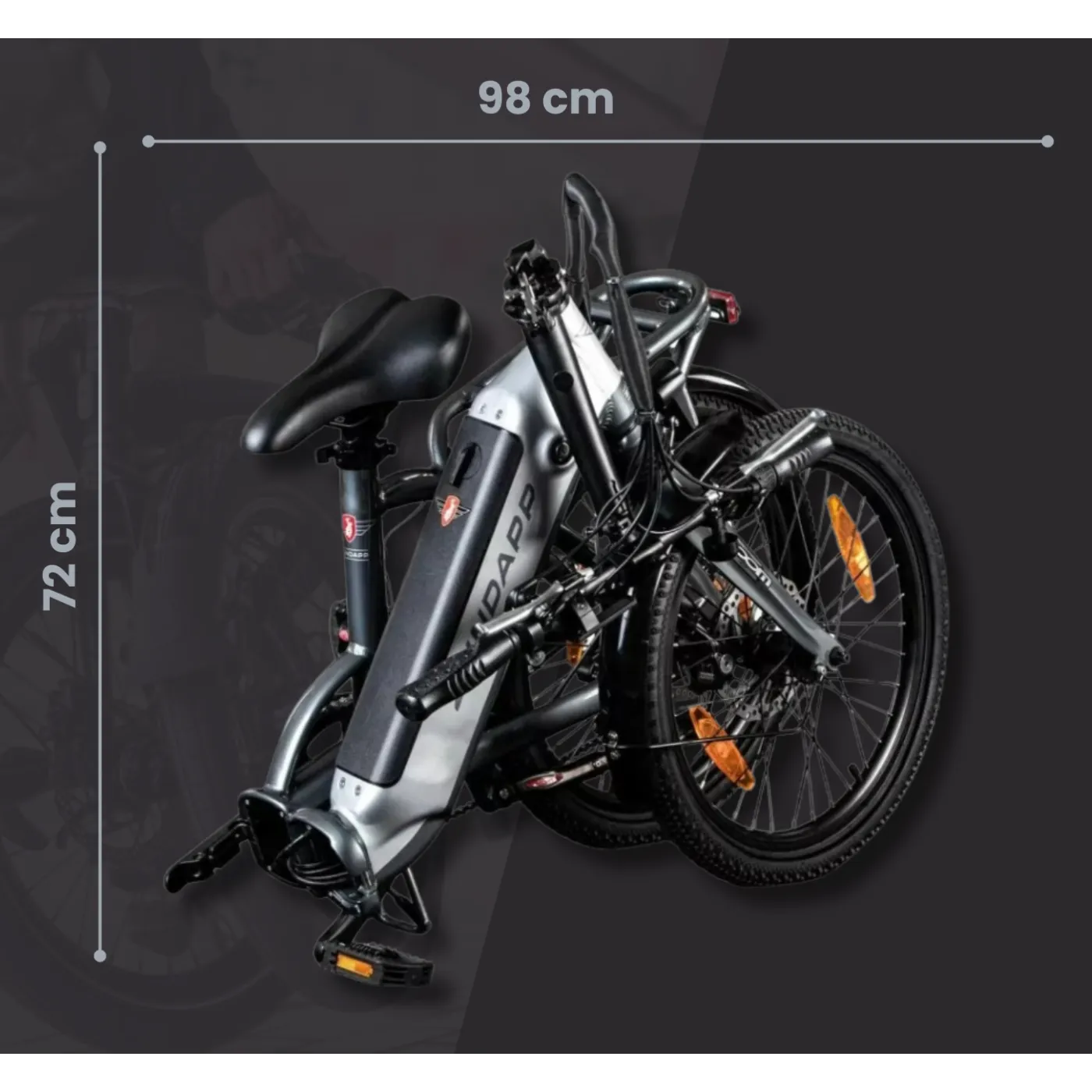 📏 Po złożeniu rower ma wymiary 98 cm x 72 cm x 42 cm dlatego można ustawić go praktycznie wszędzie! Umożliwiają to jedyne 20-calowe koła i niska rama. Niemniej jednak rower można łatwo dostosować do potrzeb wyższych rowerzystów dzięki regulowanemu siodełku i kierownicy.