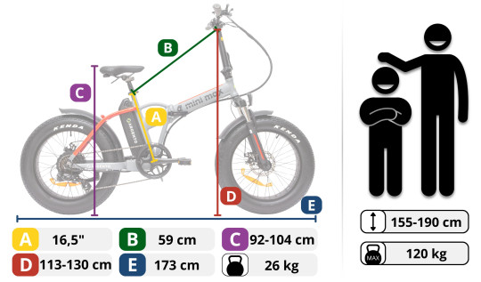 Elektryczny składany rower Argento Mini-Max został zaprojektowany z myślą o maksymalnej funkcjonalności, oferując kompaktowe wymiary po złożeniu: 105 × 75 × 50 cm.