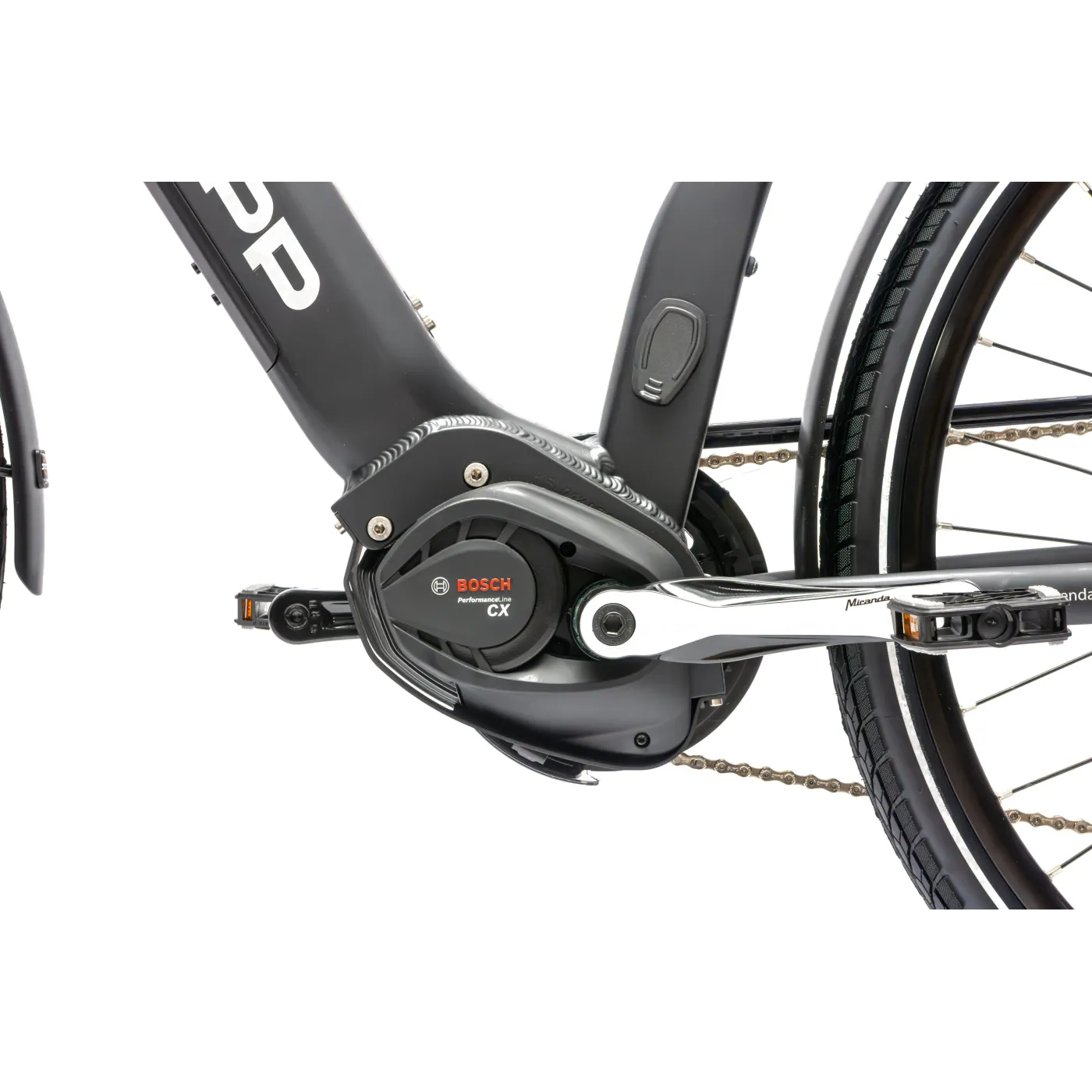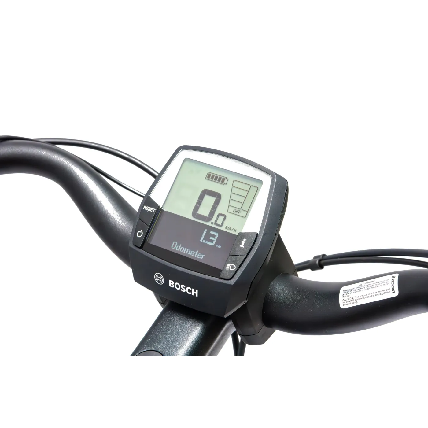 🔋 Sercem roweru jest centralny silnik Bosch CX o mocy 250W, który zapewnia płynne i wydajne wspomaganie pedałowania nawet w trudnych warunkach. Wspierany przez baterię 36V 13,4Ah (500Wh) pozwala pokonać długie dystanse bez wysiłku. Zintegrowany wyświetlacz LCD marki Bosch oraz intuicyjny panel sterowania umożliwiają łatwą kontrolę nad poziomem wspomagania, zasięgiem i innymi funkcjami jazdy – wszystko z poziomu kierownicy, bez odrywania dłoni od uchwytu.