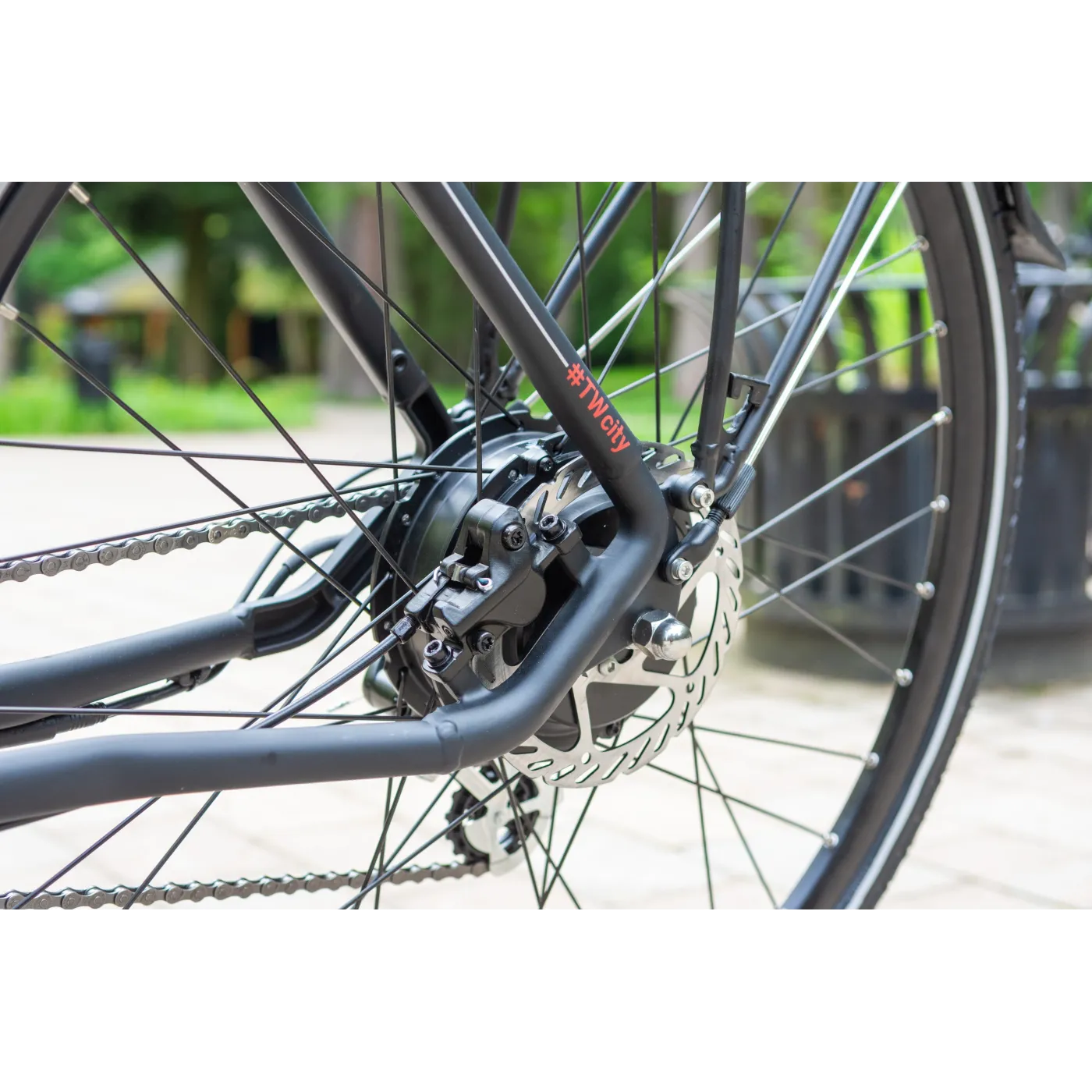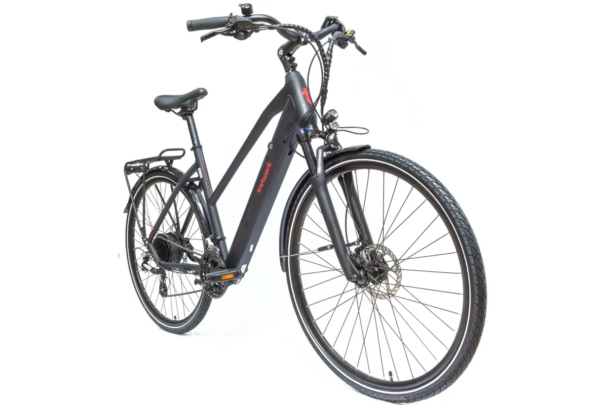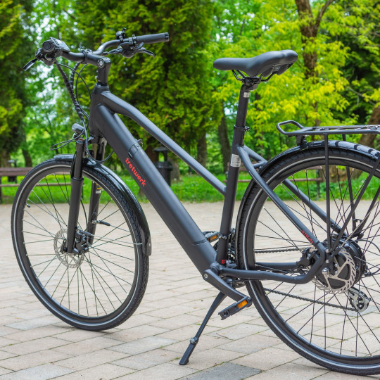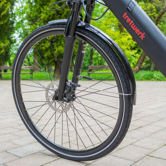 ▍ Tretwerk Seville 5.0 prezentuje się nowocześnie, elegancko i bardzo dojrzale. Czarny mat z ciemnoczerwonymi akcentami nadaje mu wyrazistego charakteru, a jednocześnie zachowuje uniwersalny, trekkingowy styl, który świetnie wpisuje się zarówno w codzienne dojazdy, jak i dłuższe wyprawy.