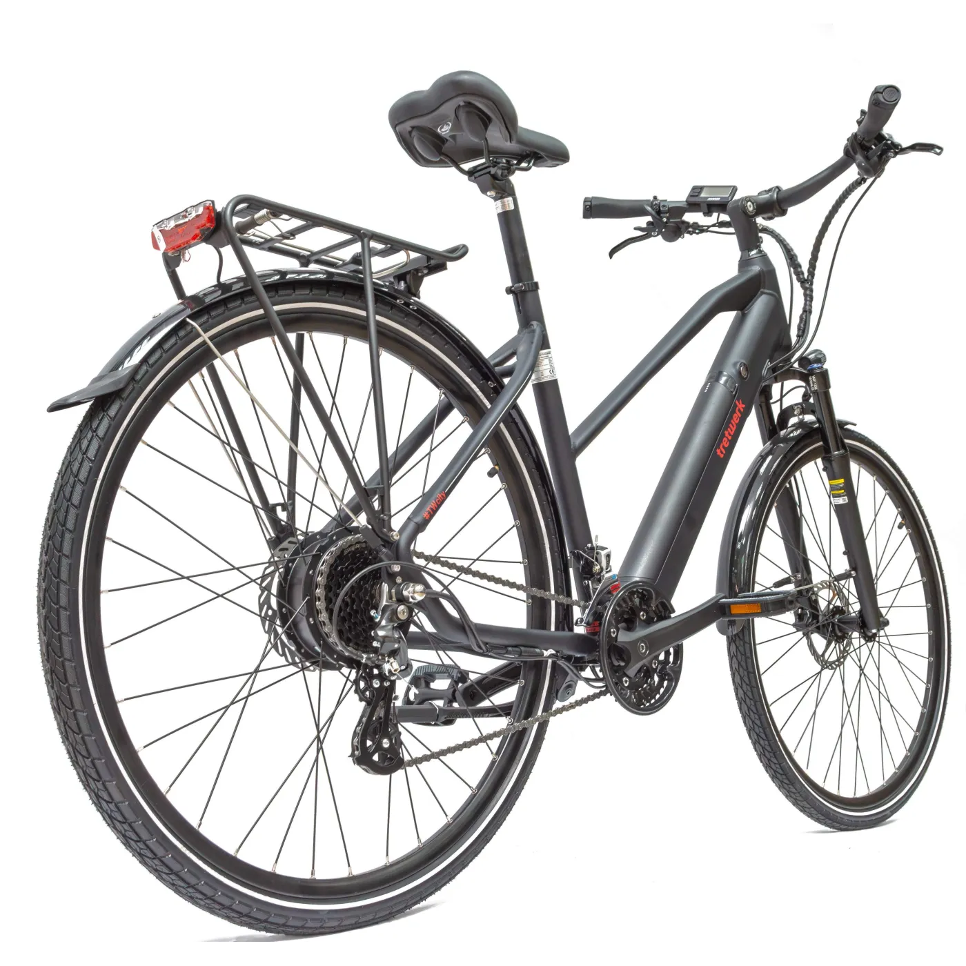 Akumulator Greenway 36 V 11.6 Ah 417.6 Wh pozwala osiągnąć zasięg do 90 km, a pełne ładowanie zajmuje około 5 godzin. Do dyspozycji masz również 5 trybów wspomagania + walk, co pozwala wygodnie dopasować pracę napędu do swoich potrzeb, terenu i długości trasy.