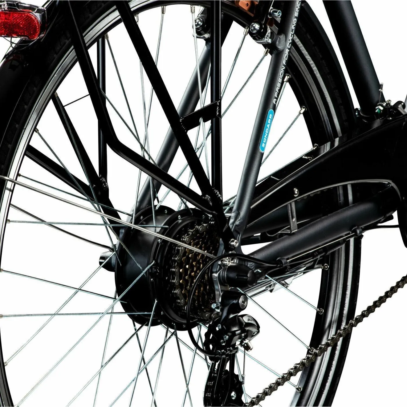 Napęd elektryczny z silnikiem na tylnym kole zapewnia moc 250 watów do prędkości 25 km/h. Z akumulatorem 374 Wh umiejscowionym na bagażniku możesz przejechać od 30 do 115 km. Ponieważ oprócz masy całkowitej, wybrany poziom wspomagania, ukształtowanie terenu i warunki pogodowe, takie jak wiatr czołowy, mają wpływ, trudno jest podać dokładną specyfikację zakresu akumulatorów do rowerów elektrycznych. Dlatego te informacje należy traktować jako przewodnik.