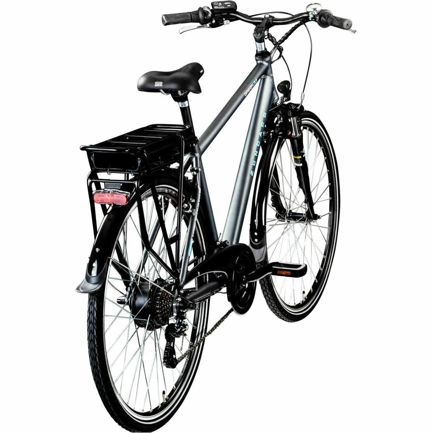 Podstawową konstrukcją e-roweru jest lekka rama diamentowa wykonana z aluminium, która jest połączona z widelcem amortyzowanym o skoku zawieszenia 63 mm. W połączeniu z kierownicą miejską z tylną korbą i mostkiem z regulacją kąta, rower zapewnia wygodną pozycję siedzącą, która pozwala jeździć przez długi czas bez objawów zmęczenia. Możesz też długo wytrzymać na wygodnym siodle.