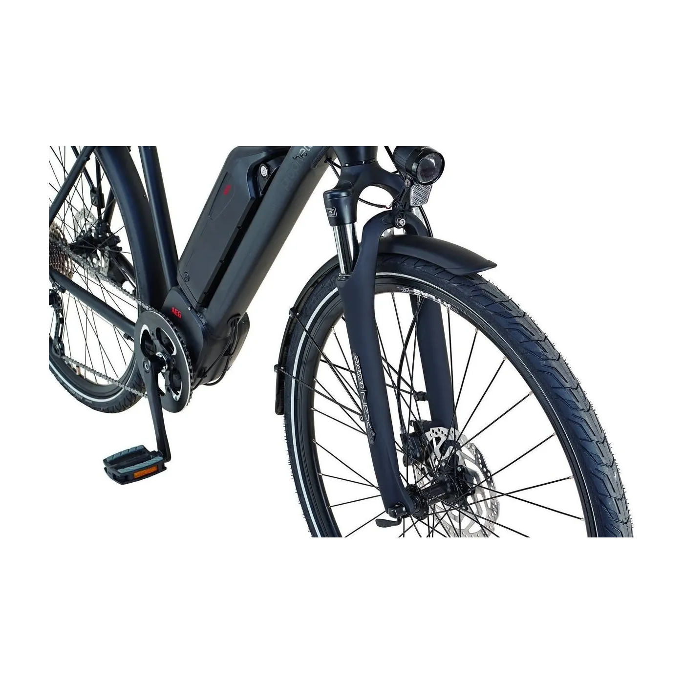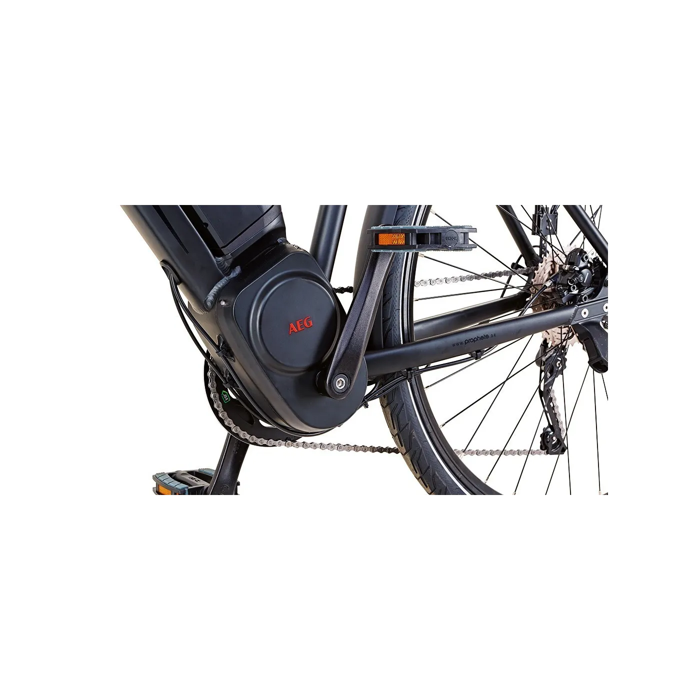 Z męskim modelem PROPHETE ENTDECKER zawsze szybko dotrzesz do celu. Centralny silnik ComfortDrive firmy AEG zapewnia doskonały napęd, który ułatwi wjazd na niejedno wzniesienie. Akumulator AEG na dolnej rurze o pojemności 576 Wh jest zamontowany na dolnej rurze dla mniejszego środka ciężkości i zapewnia zasięg nawet 180 km! Jednostka sterująca to wielofunkcyjny wyświetlacz LCD, który oprócz najważniejszych informacji oferuje funkcję ładowania smartfonów przez USB. Pamiętano również o wyposażeniu, które zadba o bezpieczeństwo na drodze - Reflektory LED zapewniają doskonałą widoczność, nawet podczas postoju. Hydrauliczne hamulce tarczowe Shimano są precyzyjne i niezawodnie zwalniają w każdej sytuacji - nawet przy wyższych prędkościach. Dzięki 8 -biegowej przerzutce Shimano Acera możesz szybko zmienić na żądany bieg.
