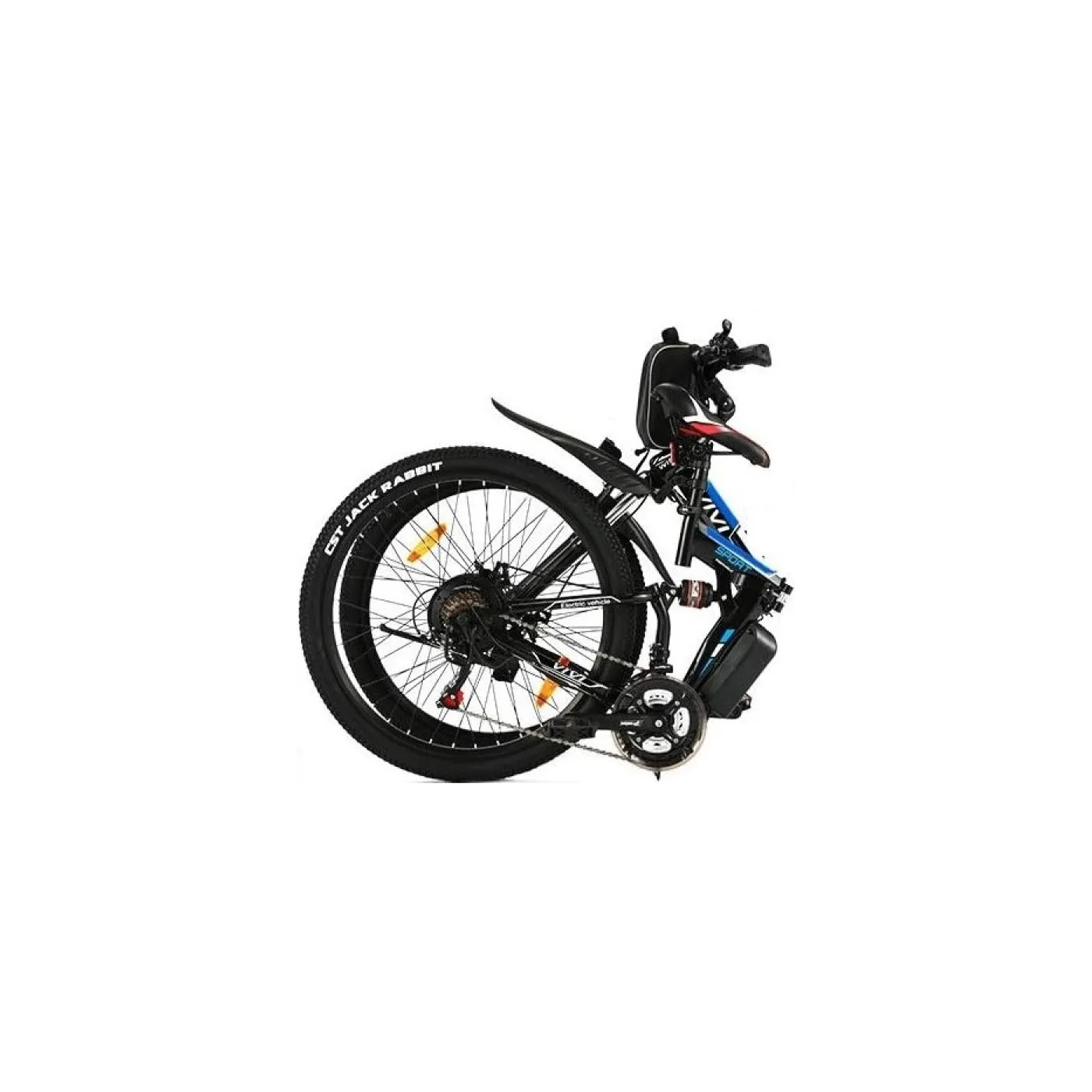 VIVI M026TGB to elektryczny górski rower składany. Wyposażony w mocny silnik 250 W, akumulator litowo-jonowy 36 V / 8 Ah , 21-biegowe przerzutki od Shimano oraz przednie i tylne podwójne hamulce tarczowe, które zapewniają bezpieczeństwo podczas hamowania. Ciesz się większą wolnością, pozwól czuć się szczęśliwym w drodze do pracy, w czasie wolnym, a także w każdej chwili podróży. Rower jest składany, wygodny do przenoszenia i można go łatwo włożyć do bagażnika samochodu.