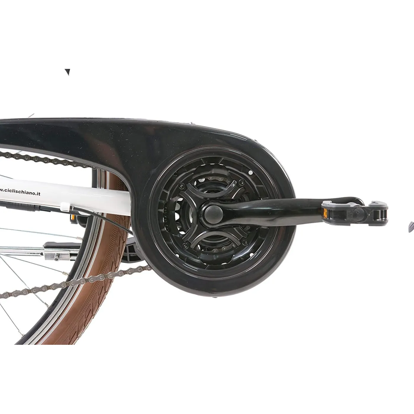 Silnik o mocy 250W oraz akumulator o pojemności 10,4Ah pozwala na pokonanie nawet do 50 km! (w zależności od wagi użytkownika, warunków i trybu jazdy) Bateria umieszczona jest pod bagażnikiem, dzięki czemu rower nie traci miejsca do transportu bagażu. Dodatkowym atutem jest komfortowa pozycja jazdy, którą zapenia wygodne siodełko i szeroka kierownica. Rower wyposażony jest w 21 biegów, co ułatwia podróżowanie po zróżnicowanym terenie oraz dwa hamulce V-brake. E-Rideposiada wszystkie potrzebne akcesoria, tj. błotniki, bagażnik, stopkę i oświetlenie oraz dzwonek - zapewniając tym bezpieczeństwo jazdy.