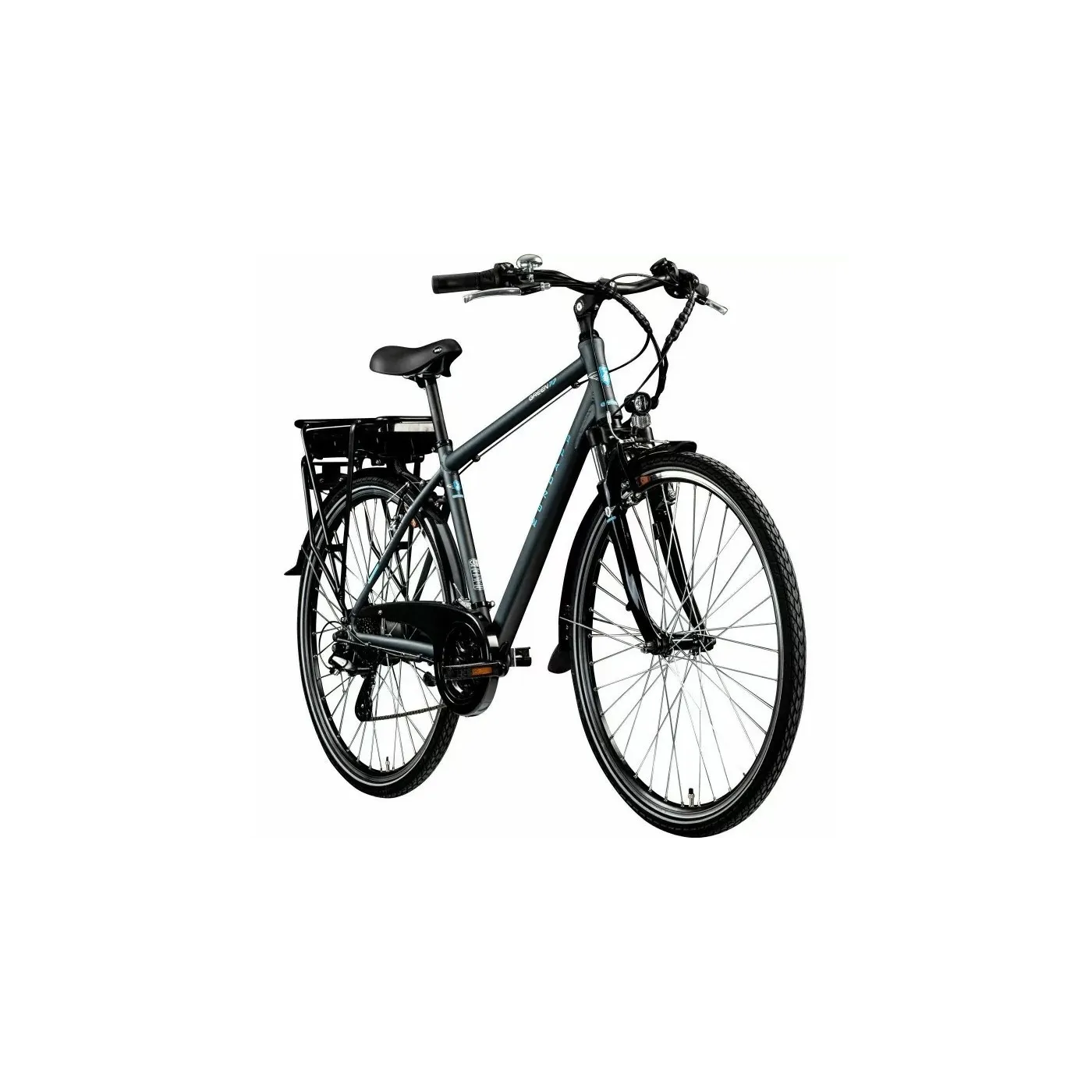 💎 Podstawową konstrukcją e-roweru jest lekka rama diamentowa wykonana z aluminium, która jest połączona z widelcem amortyzowanym o skoku zawieszenia 63 mm. W połączeniu z kierownicą miejską z tylną korbą i mostkiem z regulacją kąta, rower zapewnia wygodną pozycję siedzącą, która pozwala jeździć przez długi czas bez objawów zmęczenia. Możesz też długo wytrzymać na wygodnym siodle.