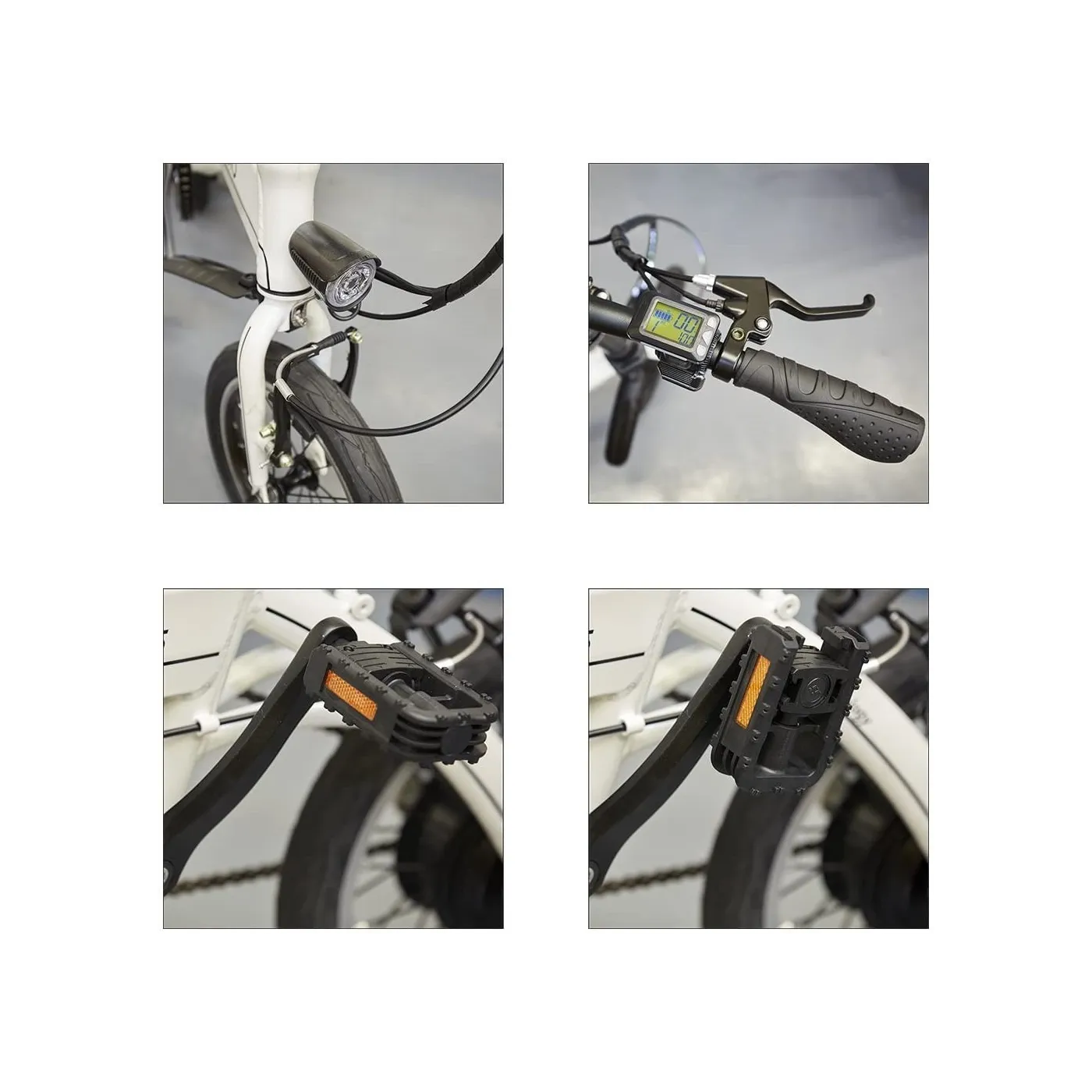 Wyposażony jest w wysokiej jakości światła LED, błotniki oraz stopkę.