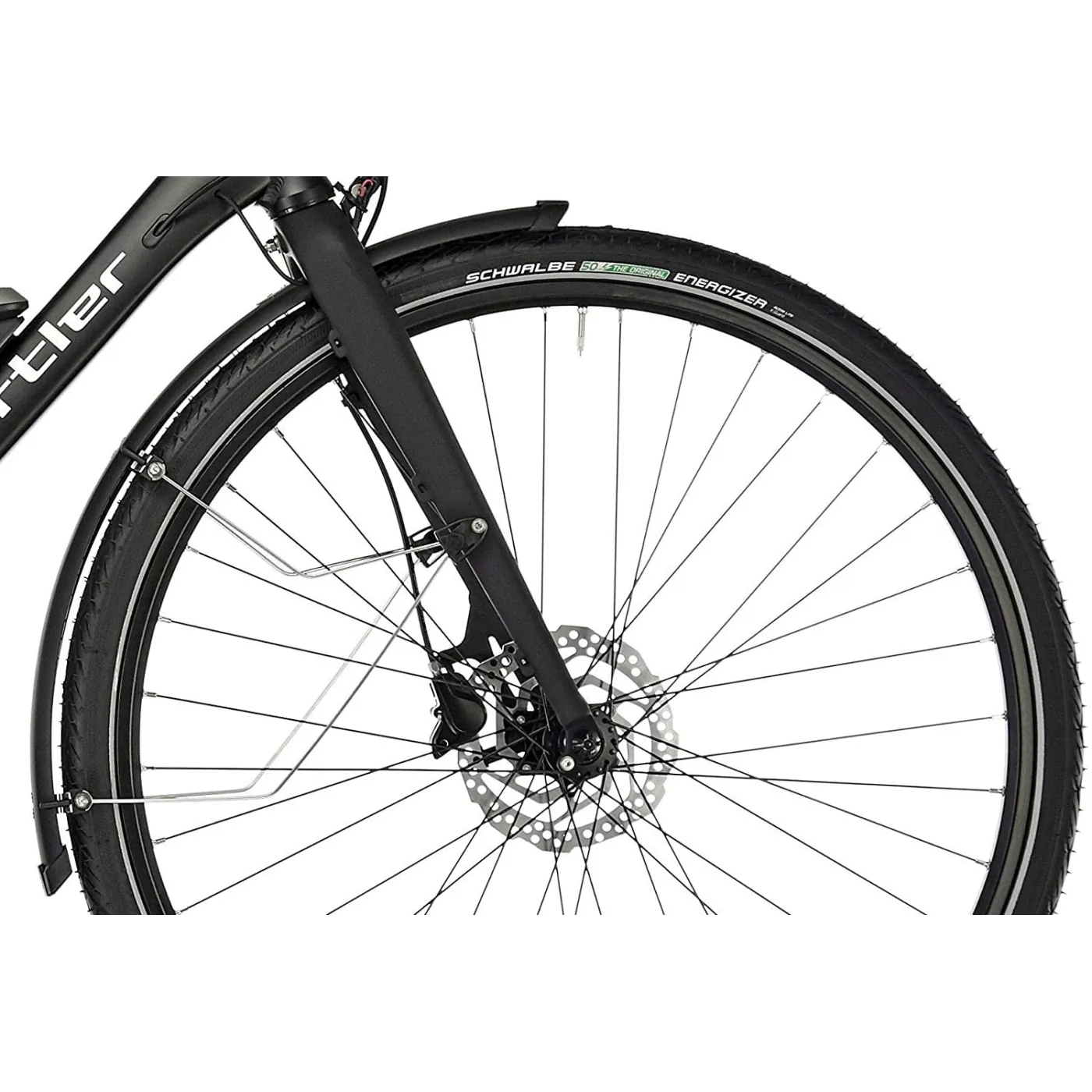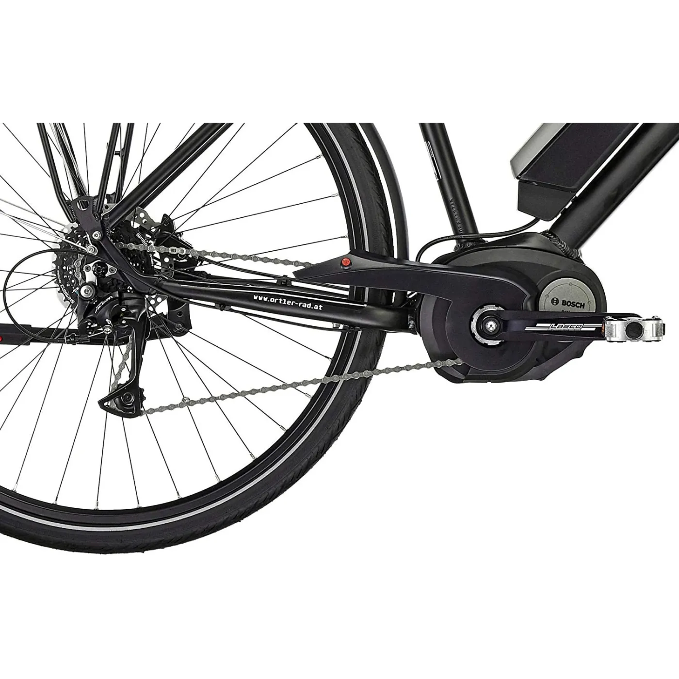 Ortler Munich oferuje wszystkie zalety wysokiej jakości roweru turystycznego z dodatkowym komfortem i mocą nowoczesnego napędu Bosch E-Bike. Dzięki do 250 W mocy wspomagającej i wydajnemu akumulatorowi nie musisz się zastanawiać nad planowaniem kolejnej jazdy na rowerze. 9-biegowy system zmiany przełożeń Shimano Bosch E-Bike pomaga osiągnąć komfortową prędkość podróżną 25 km / h. Poziom wsparcia można kontrolować za pomocą display'a. W razie potrzeby akumulator zasila również stałe oświetlenie LED. Potężne hydrauliczne hamulce tarczowe Shimano zapewniają niezmiennie wysokie jakość hamowania w każdych warunkach. Stabilna stopka i bagażnik uzupełniają doskonały rower do e-touringu firmy Ortler.