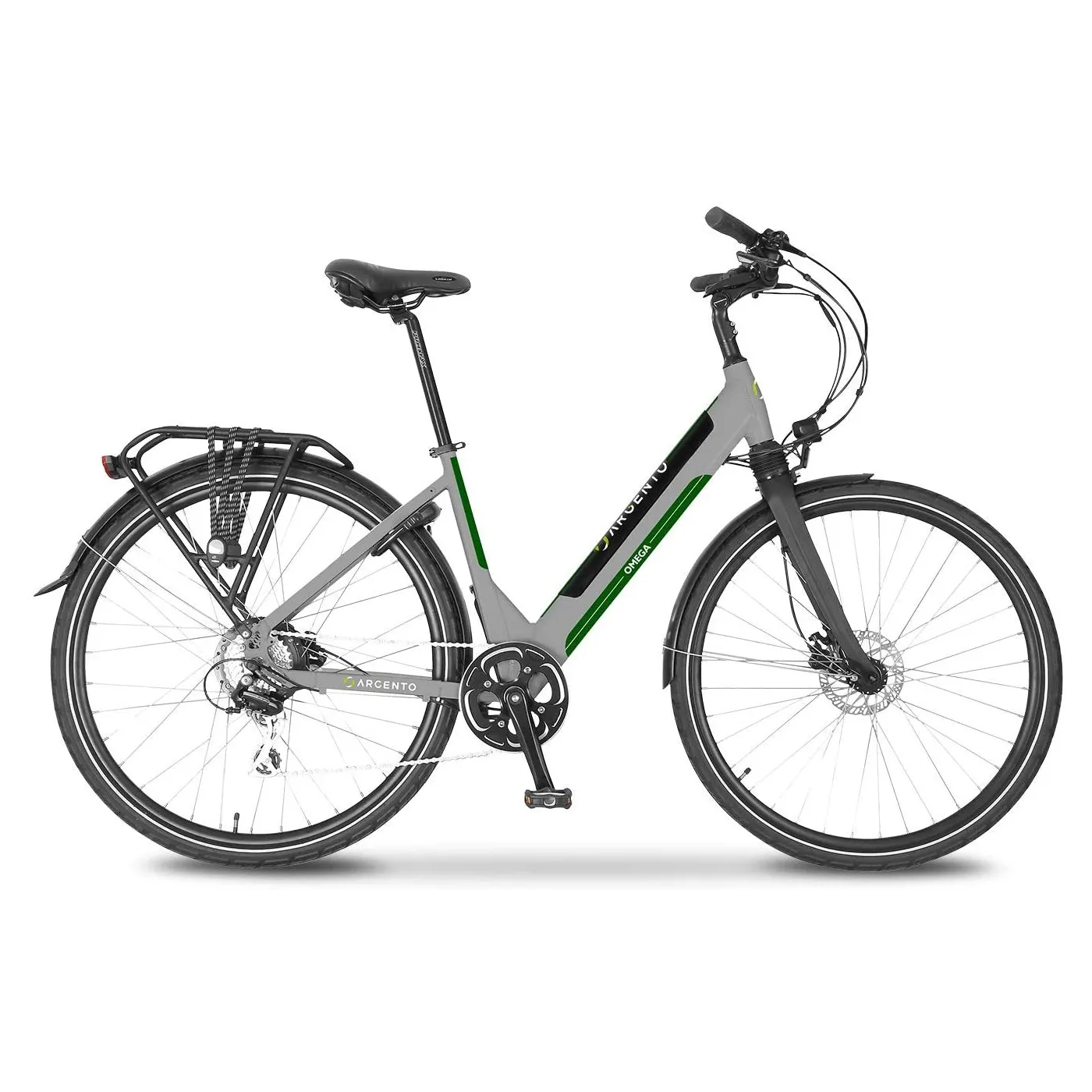 Wyjątkowy rower Argento Omega z aluminiową ramą spełni nawet największe wymagania. Wyposażony w silnik 250W i litowo-jonowy akumulator 10,4 Ah pozwoli na pokonanie do 80 km na jednym ładowaniu! (w zależności od warunków) Omega posiada 3 tryby wspomagania, a hamulce tarczowe oraz 7 biegów tylnej przerzutki Shimano jeszcze bardziej zoptymalizują jazdę. Ponad to ten rower miejski posiada wszystkie niezbędne akcesoria: oświetlenie, błotniki, podnóżkę, bagażnik, osłona łańcucha. Całości dopełnia nietuzinkowy wygląd oraz detale, takie jak chwyty, siodełko i wykończenie ramy.
