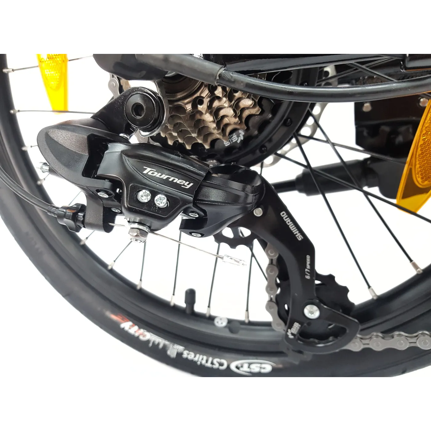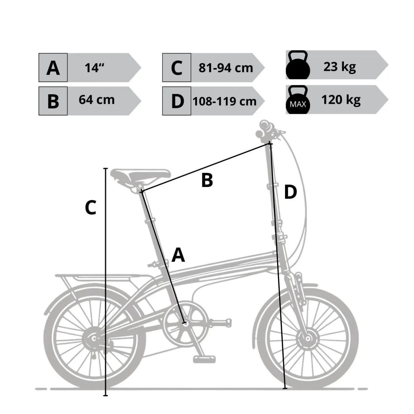 📏 Po złożeniu rower ma wymiary 98 cm x 72 cm x 42 cm dlatego można ustawić go praktycznie wszędzie! Umożliwiają to jedyne 20-calowe koła i niska rama. Niemniej jednak rower można łatwo dostosować do potrzeb wyższych rowerzystów dzięki regulowanemu siodełku i kierownicy.