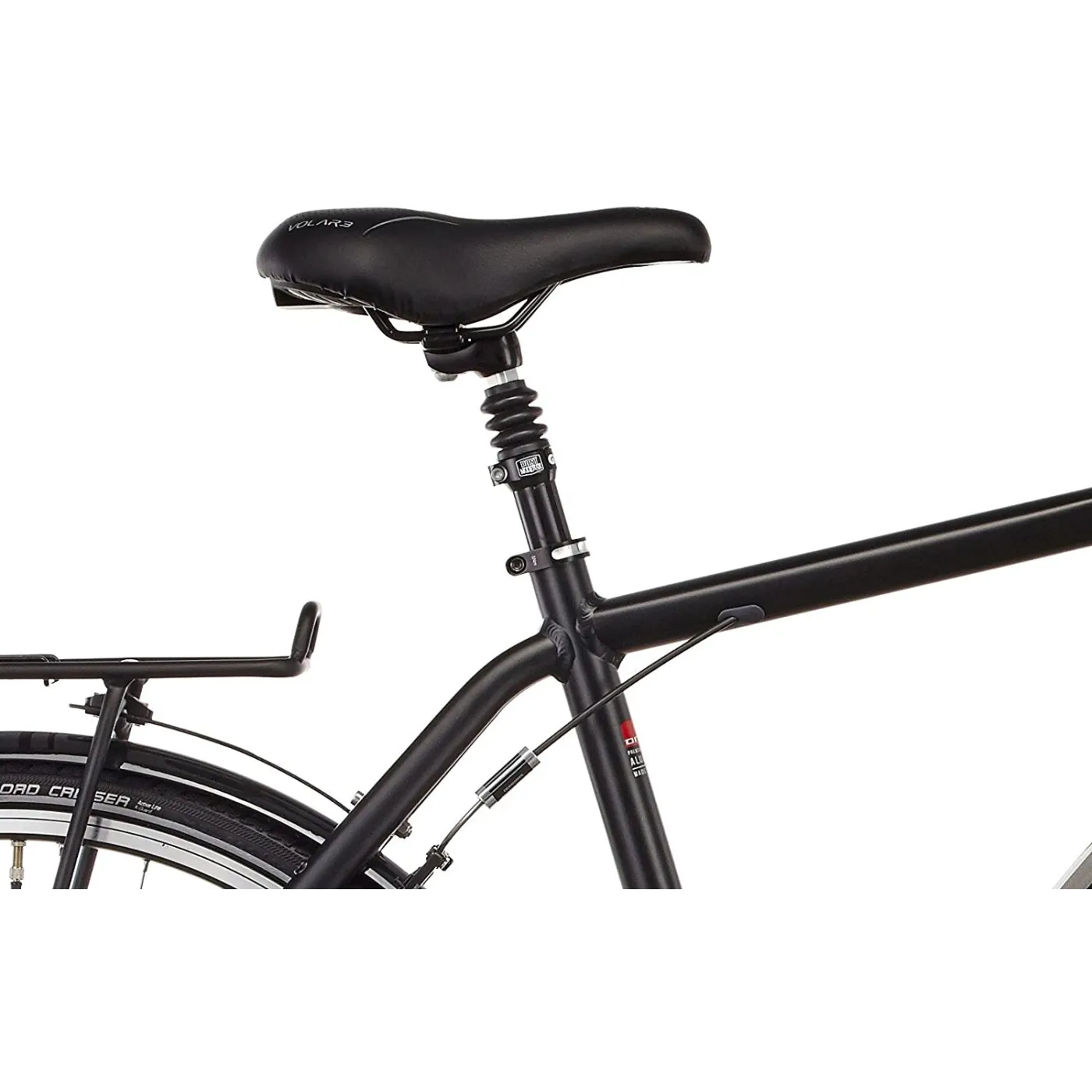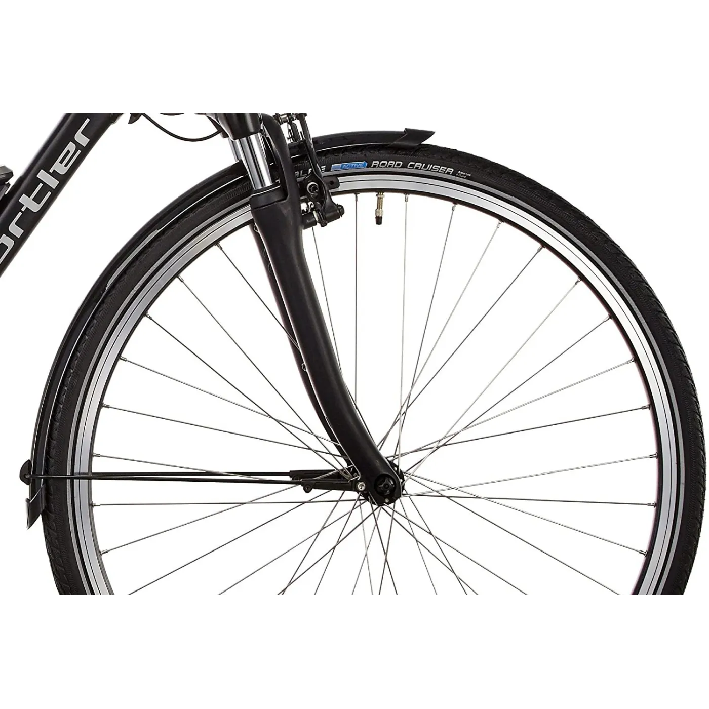 Stabilna aluminiowa rama, duże 28 calowe koła, 3 biegi od Shimano Nexus, a co najważniejsze 250 W silnik oraz akumulator 8,2 Ah - to komplet, który pozwoli Ci cieszyć się jazdą każdego dnia. Ortler Wien może pokonać do 90 km na jednym ładowaniu z prędkością do 25 km/h! Moc silnika można regulować za pomocą przejrzystego panelu na kierownicy, który pokazuje zarówno prędkość, jak i moc silnika i akumulatora. Akumulator można wyjąć, jeśli chcesz korzystać z Ortlera Wien jako zwykłego 3-biegowego roweru. Aby zapewnić wysoki komfort jazdy, rower ma amortyzowane siodełko i przedni widelec, a także regulowany mostek, który pozwala na utrzymanie zdrowej i wygodnej pozycji w trasie. Dodatkowym atutem są akcesoria, w które jest wyposażony Wien, tj. oświetlenie wysokiej klasy AXA LED, bagażnik, błotniki oraz stopka.