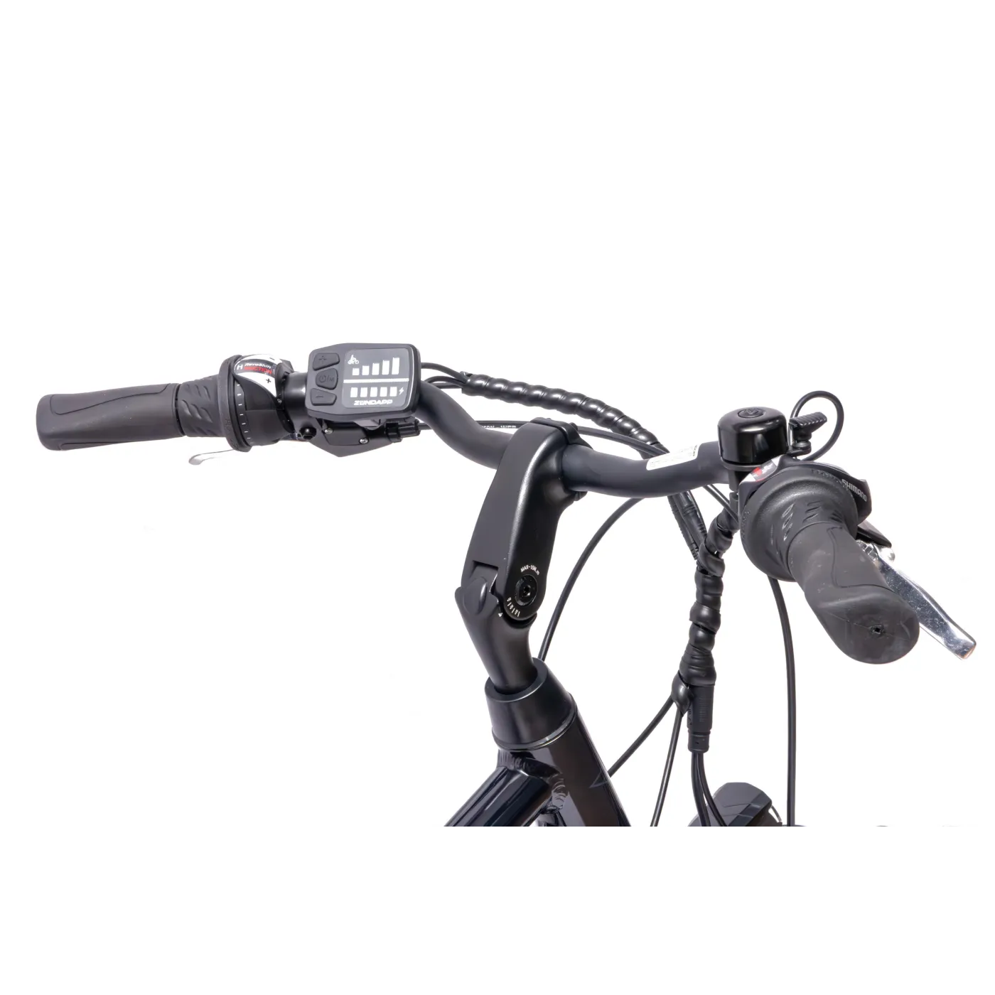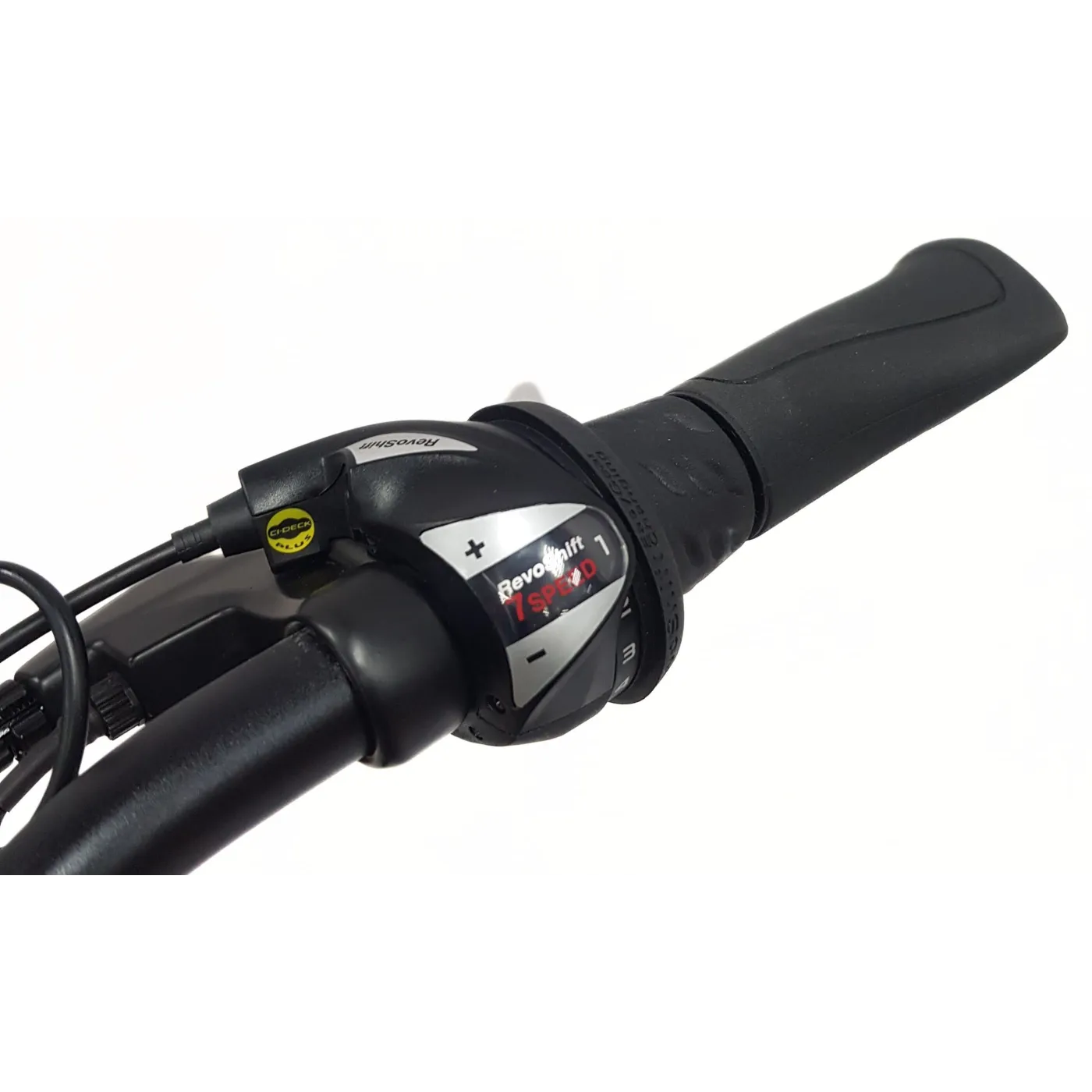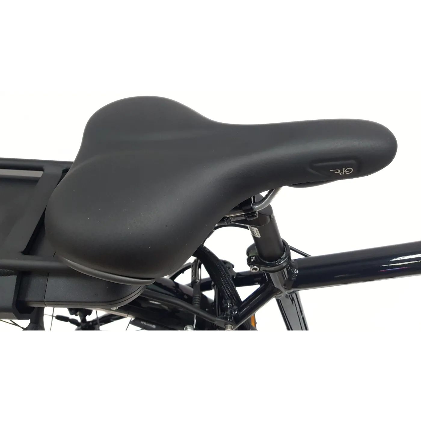 ⚖️ Rower elektryczny posiada trapezową ramę, która – wyposażona w amortyzowany widelec i wygodne siodełko – zapewnia duży komfort jazdy nawet na długich dystansach. Ergonomicznie ukształtowane uchwyty na wygiętej kierownicy uzupełniają ogólny obraz i zapobiegają drętwieniu.