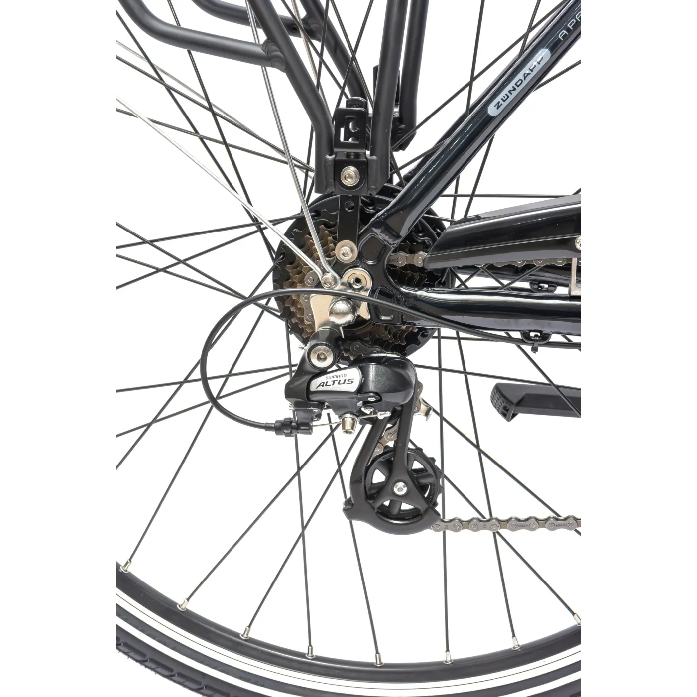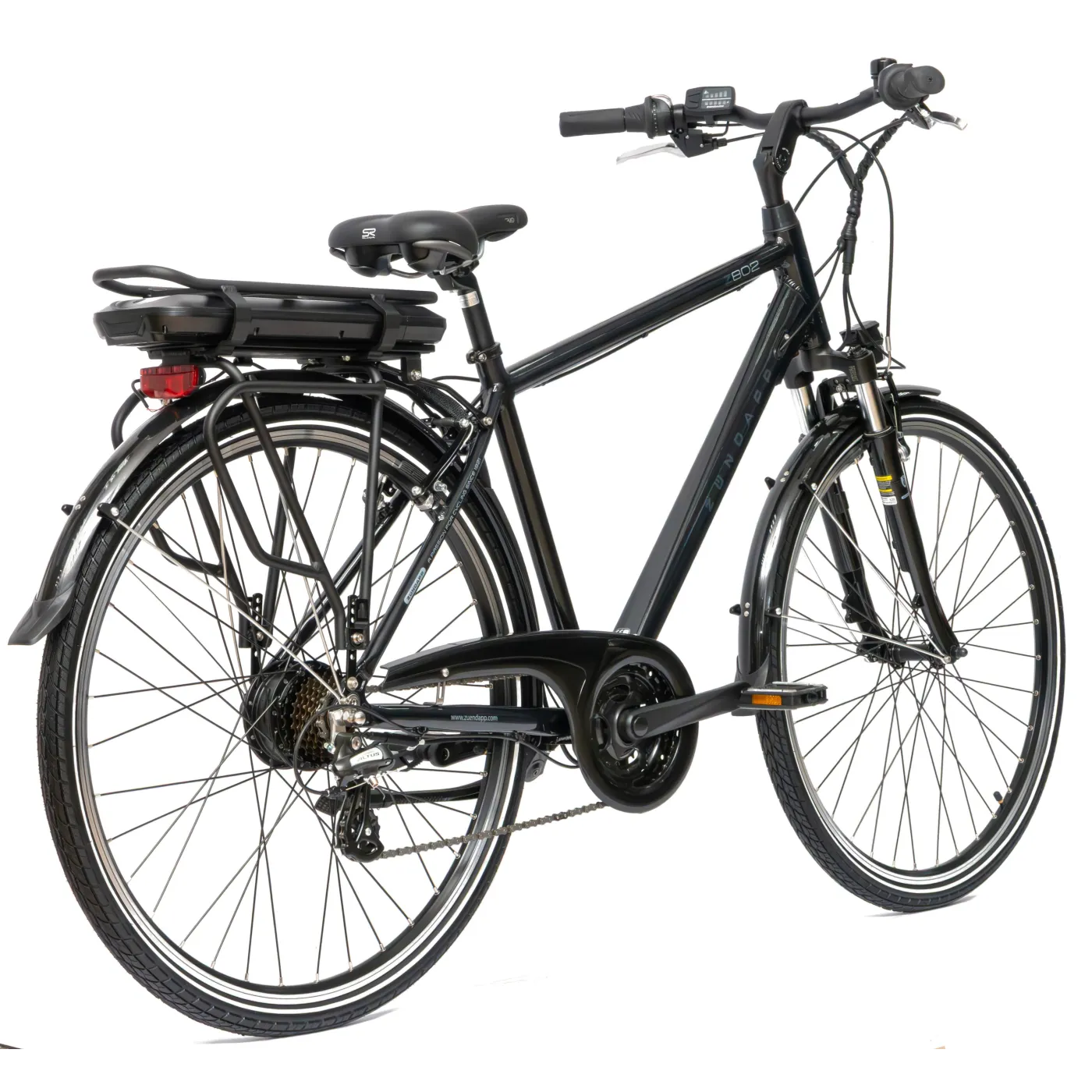 ✔️ Bogate wyposażenie roweru elektrycznego Zündapp Z802 obejmuje błotniki, osłonę łańcucha, stopkę boczną, bagażnik i oświetlenie drogowe zgodne z StVZO.