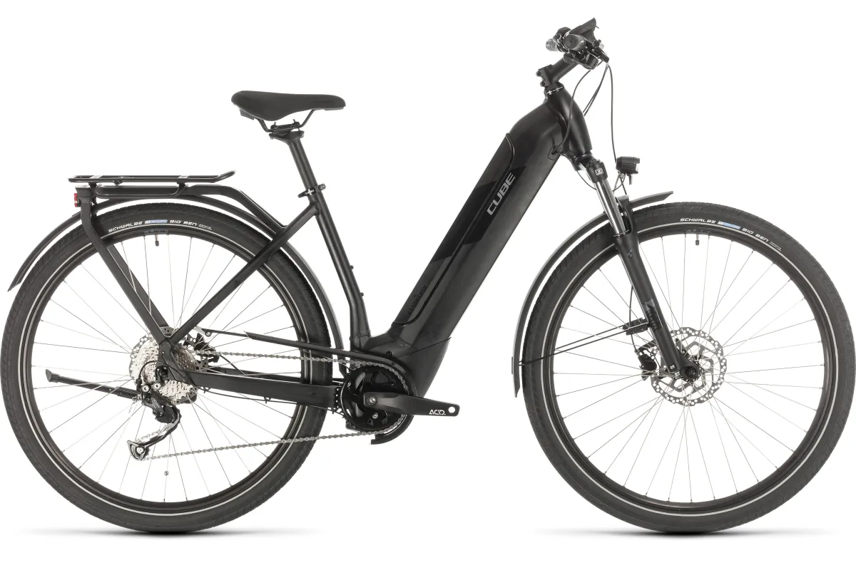 Kathmandu Hybrid ONE - naprawdę niedrogi, turystyczny rower elektryczny czwartej generacji Bosch, zaprojektowany specjalnie dla ciekawskich. Jedź tam, dokąd zaprowadzi Cię Twoja wyobraźnia, zabierz ze sobą to, czego potrzebujesz, i odkrywaj nowe horyzonty. Dzięki mocnemu, sztywnemu bagażnikowi Integrated Carrier 2.0 i zaawansowanej konstrukcji ramy, Kathmandu Hybrid ONE jest niezawodnym towarzyszem, którego będziesz potrzebować w jednośladowych wyprawach. Oparta na naszym nowym systemie akumulatorowym Modular Battery, elegancka rura dolna ma dużo miejsca dla Bosch PowerTube, ukrytego za łatwo dostępną pokrywą. Nowy projekt jest nie tylko wyjątkowo schludny - oznaczał również, że nasi inżynierowie mogli zaoferować opcję akumulatora o większej pojemności dla jeszcze większego zasięgu, pozostawiając jednocześnie miejsce na mocowania do koszyków na bidon. Dołączona podpórka CUBE uwalnia od szukania "wygodnej” ściany lub drzewa, na których można oprzeć rower, a błotniki pełnej długości pomagają utrzymać suchość na mokrych drogach, natomiast światła pozwalają widzieć i być widocznym, niezależnie od tego, jak późno kończysz jazdę. Amortyzowany widelec Suntour w połączeniu z szerokimi oponami Schwalbe wygładza nawet najbardziej wyboiste drogi. Łatwe w obsłudze, niezawodne 9-biegowe przerzutki Shimano bezproblemowo współpracują z układem napędowym Bosch, zwiększając moc pedałowania i ułatwiając każdą wyprawę i każdy podjazd. Zainstalowaliśmy nawet potężne hydrauliczne hamulce tarczowe Shimano, aby bezpiecznie i pewnie zatrzymać się w każdych warunkach pogodowych.