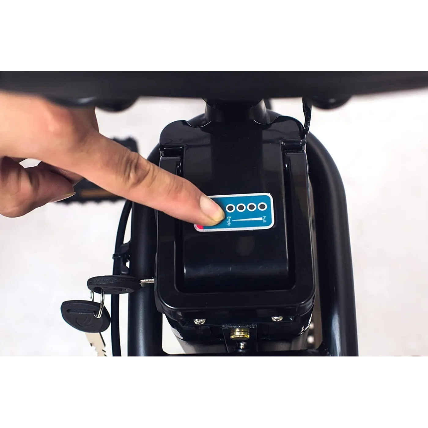 Jest wyposażony w system składania, dzięki któremu wystarczą 3 kroki aby złożyć go do naprawdę niewielkich rozmiarów. Zabranie ze sobą roweru na wycieczkę do innego miasta czy przechowywanie w domu będzie od teraz dużo łatwiejsze - rower po złożeniu zajmuje na tyle mało miejsca, że mieści się nawet w bagażnikach samochodów. Ten niewielki rower wyposażony został w silnik 250W, który pozwoli Ci pedałować bez większego wysiłku, gdzie tylko zechcesz. Dodatkowym atutem jest również kształt ramy o niskim przekroku - pozwoli to na łatwe wsiadanie oraz schodzenie z roweru.