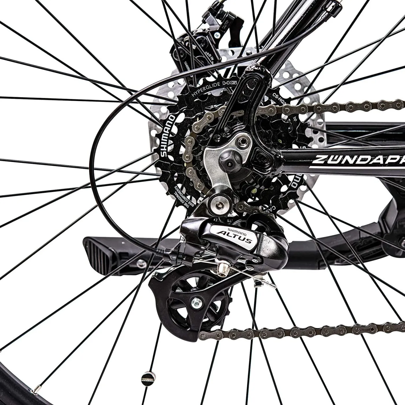 Oprócz elektrycznego Zündapp Z808 ma również napęd łańcuchowy z 7 biegami. Zainstalowana jest przerzutka tylna Shimano, która zapewnia precyzyjną zmianę biegów przy zmniejszonym zużyciu i niskim poziomie hałasu. Kaseta wyposażona jest w technologię HyperGlide, w której łańcuch płynnie ślizga się po zębatce. Skutkuje to mniejszym zużyciem, a procesy zmiany biegów stają się płynniejsze. Dźwignia zmiany biegów Shimano pozwala wygodnie wybierać biegi.