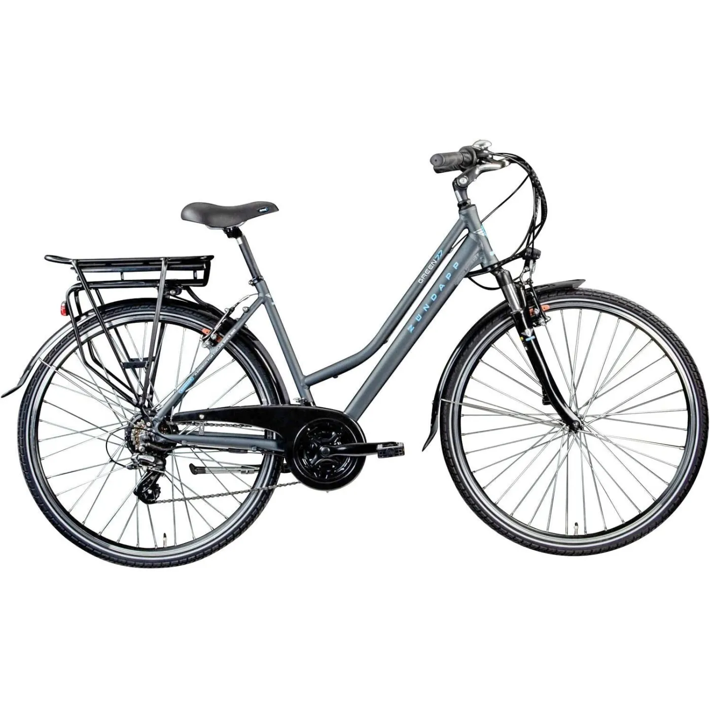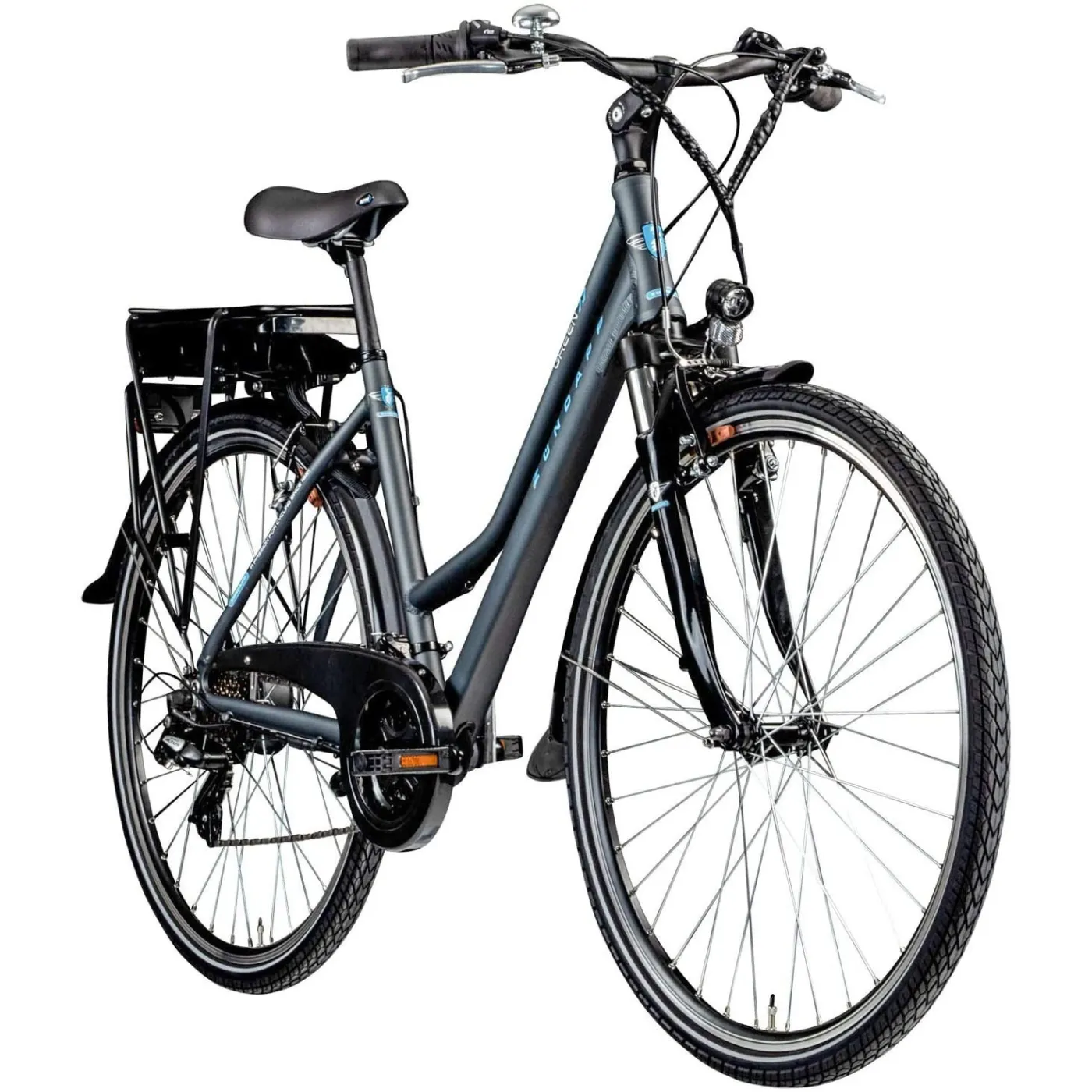 Podstawową konstrukcją e-roweru jest lekka rama diamentowa wykonana z aluminium, która jest połączona z widelcem amortyzowanym o skoku zawieszenia 63 mm. W połączeniu z kierownicą miejską z tylną korbą i mostkiem z regulacją kąta, rower zapewnia wygodną pozycję siedzącą, która pozwala jeździć przez długi czas bez objawów zmęczenia. Możesz też długo wytrzymać na wygodnym siodle.