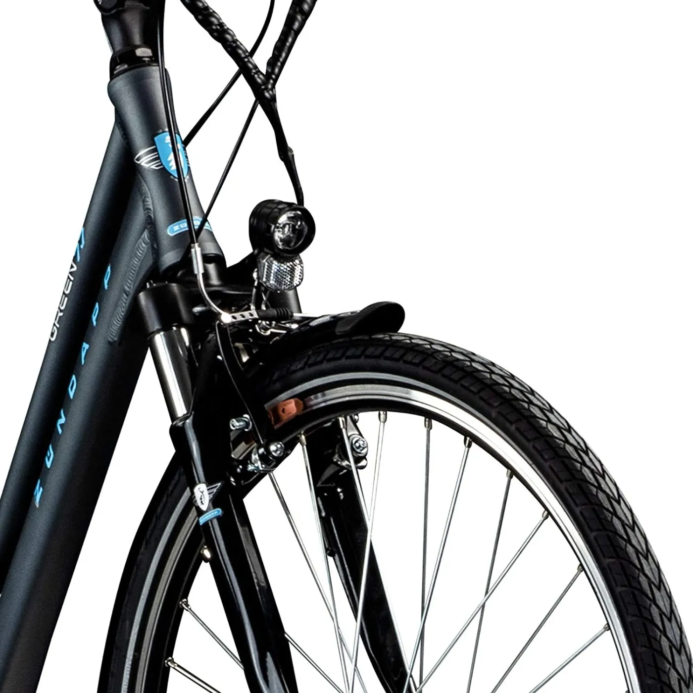 Napęd elektryczny z silnikiem na tylnym kole zapewnia moc 250 watów do prędkości 25 km/h. Z akumulatorem 374 Wh umiejscowionym na bagażniku możesz przejechać od 30 do 115 km. Ponieważ oprócz masy całkowitej, wybrany poziom wspomagania, ukształtowanie terenu i warunki pogodowe, takie jak wiatr czołowy, mają wpływ, trudno jest podać dokładną specyfikację zakresu akumulatorów do rowerów elektrycznych. Dlatego te informacje należy traktować jako przewodnik.