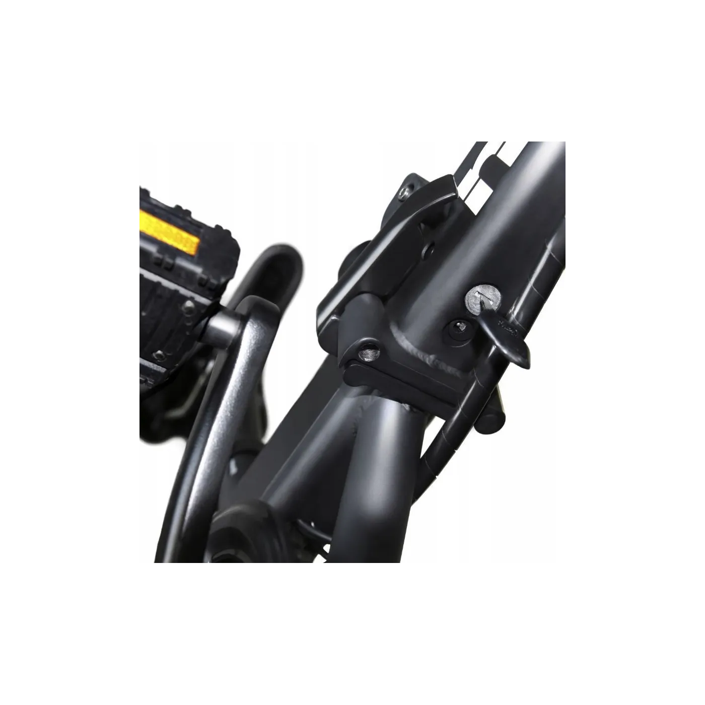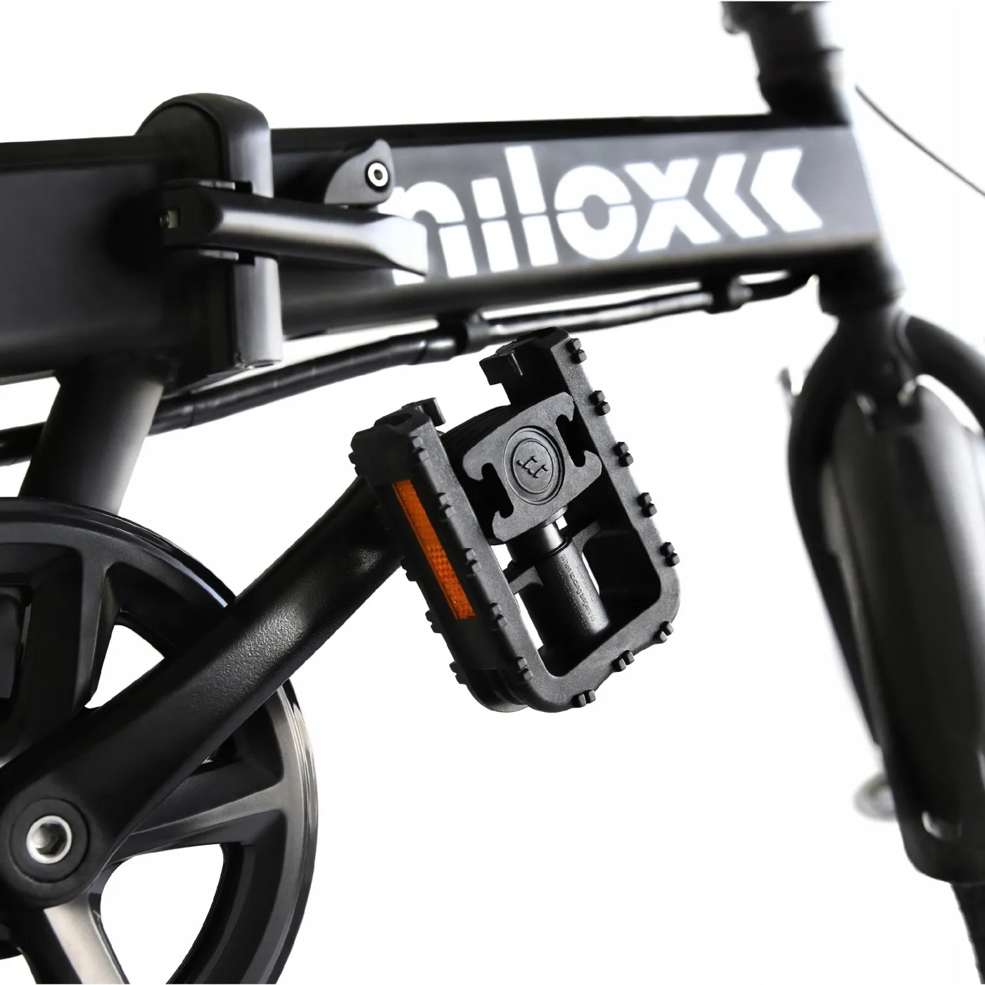 Może jechać z prędkością do 25 km/h dzięki systemowi wspomagania pedału, który można aktywować za pomocą kierownicy. Dodatkowo posiada system składania, umożliwiający wygodne przechowywanie zarówno w domu jak i w samochodzie.