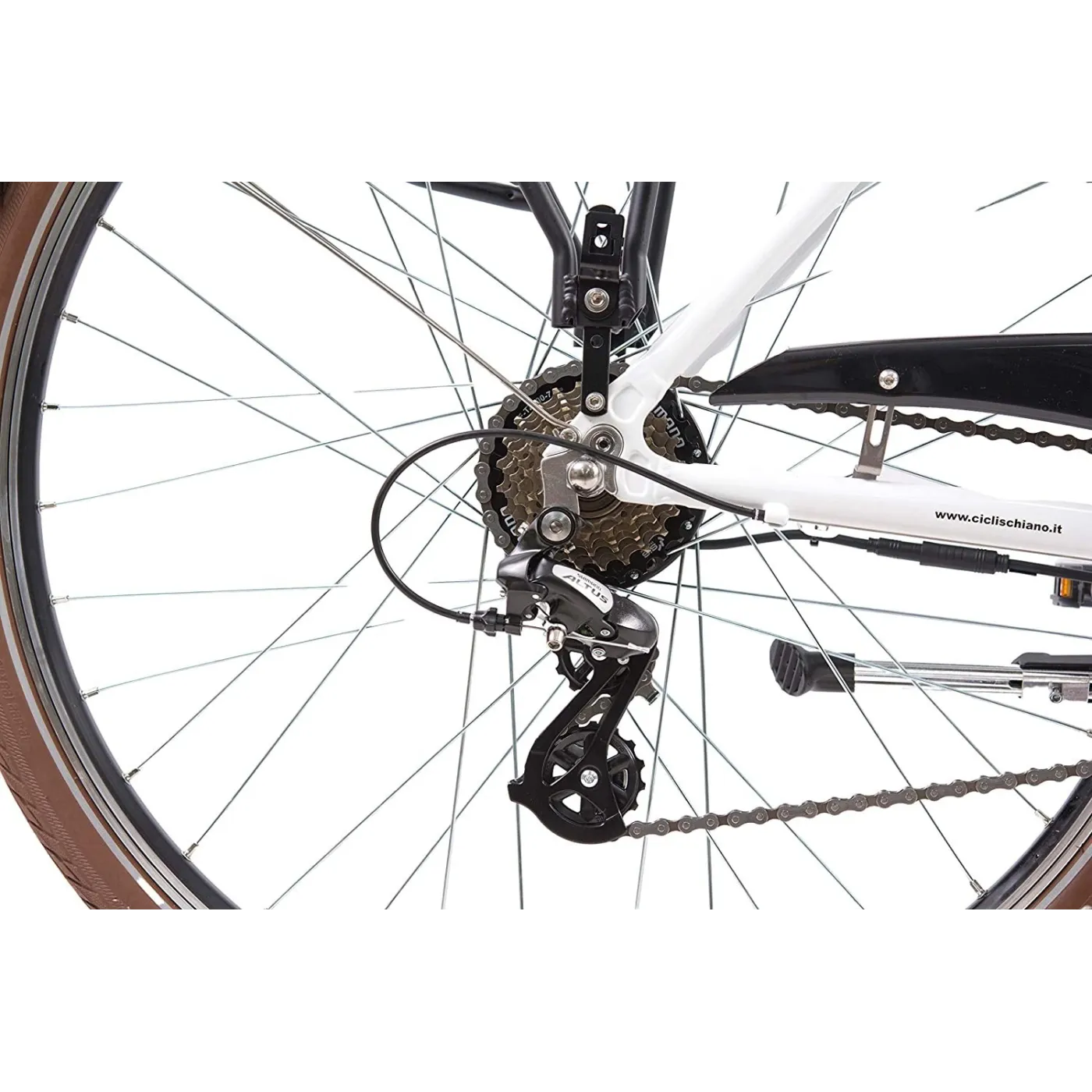 Silnik o mocy 250W oraz akumulator o pojemności 10,4Ah pozwala na pokonanie nawet do 50 km! (w zależności od wagi użytkownika, warunków i trybu jazdy) Bateria umieszczona jest pod bagażnikiem, dzięki czemu rower nie traci miejsca do transportu bagażu. Dodatkowym atutem jest komfortowa pozycja jazdy, którą zapewnia wygodne siodełko i szeroka kierownica. Rower wyposażony jest w 21 biegów, co ułatwia podróżowanie po zróżnicowanym terenie oraz dwa hamulce V-brake. E-Ride posiada wszystkie potrzebne akcesoria, tj. błotniki, bagażnik, stopkę i oświetlenie oraz dzwonek - zapewniając tym bezpieczeństwo jazdy.